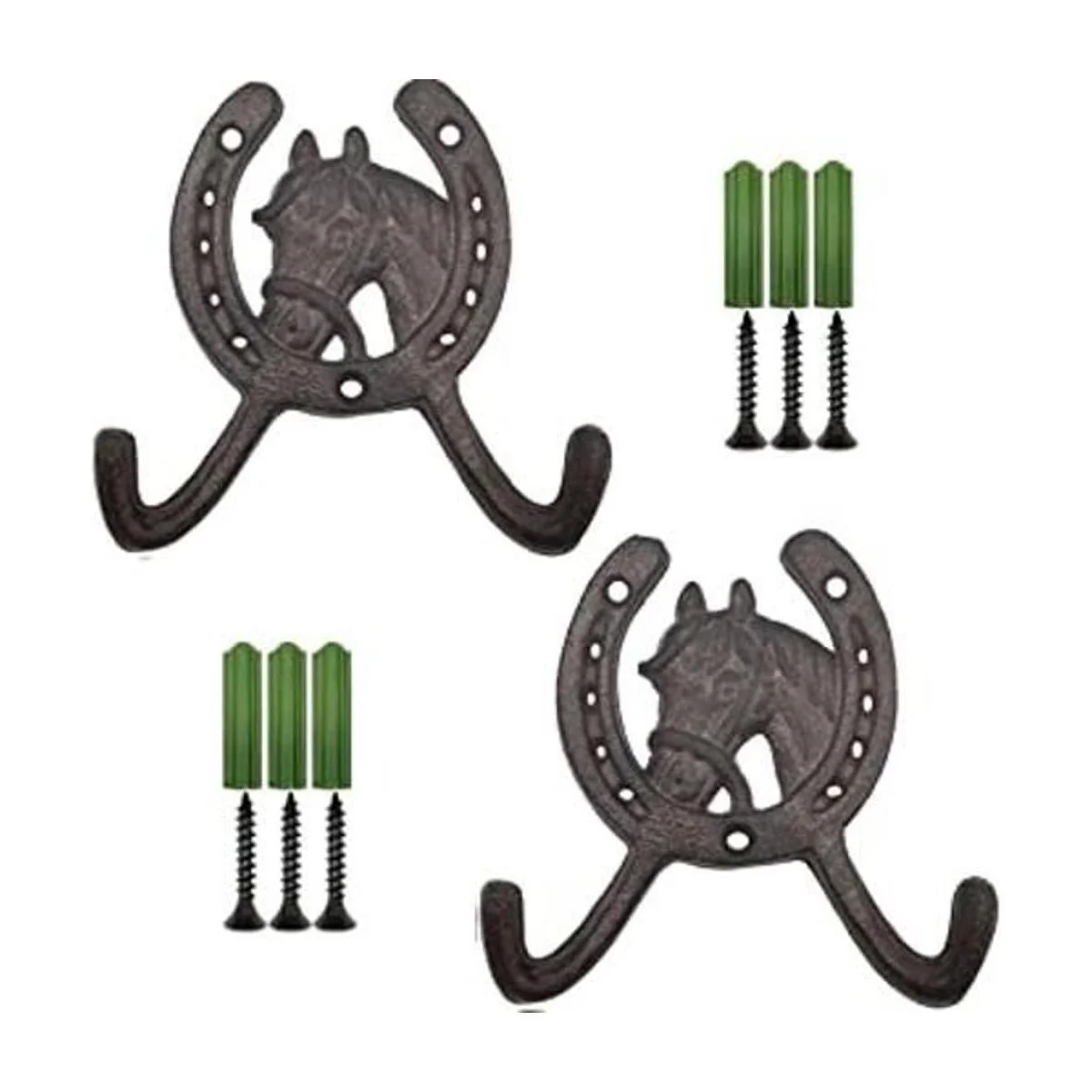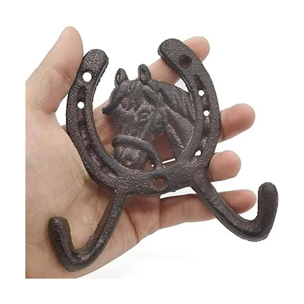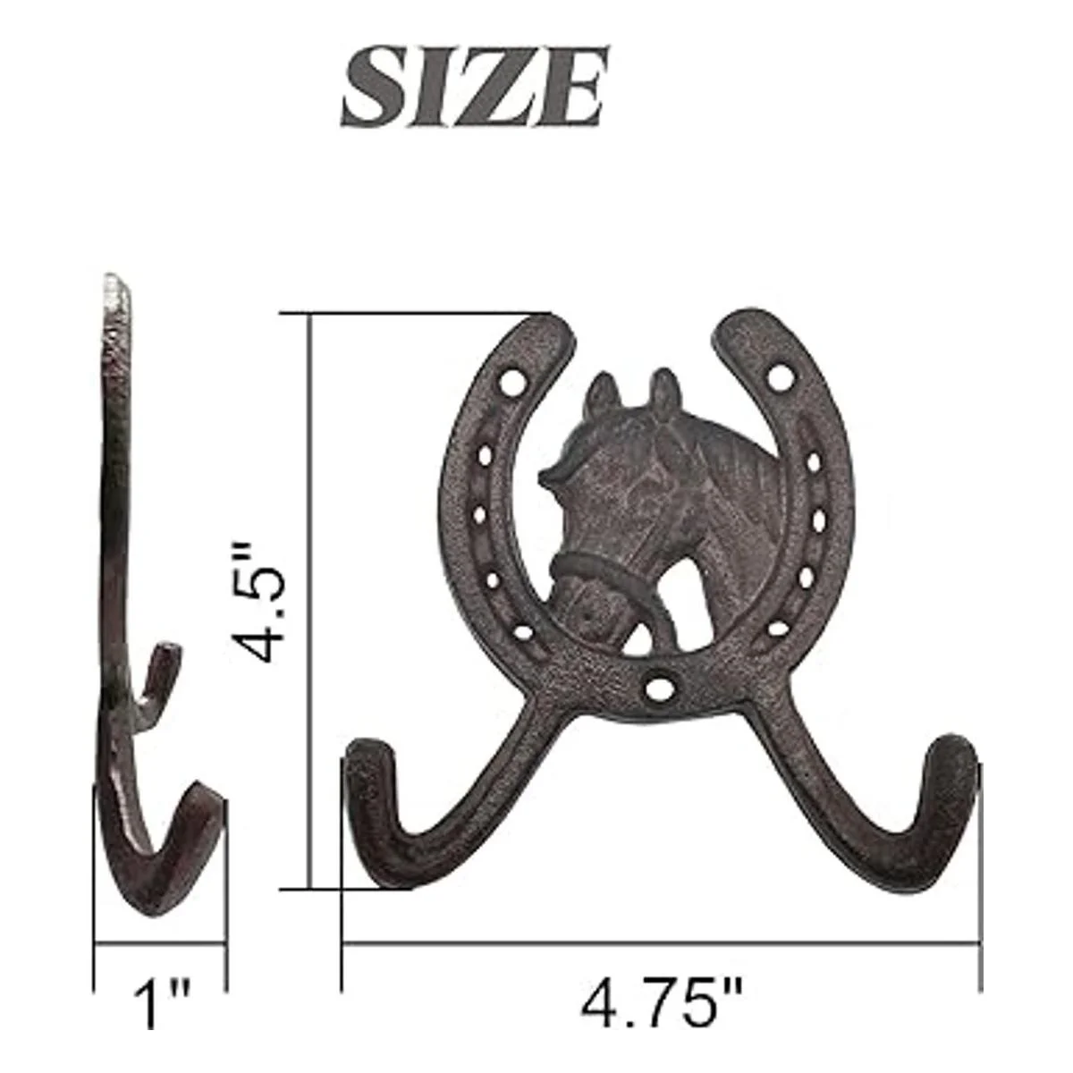 RONYOUNG 2 ganchos de pared de hierro fundido, de 4.5 in, con cabeza de caballo, de herradura, doble