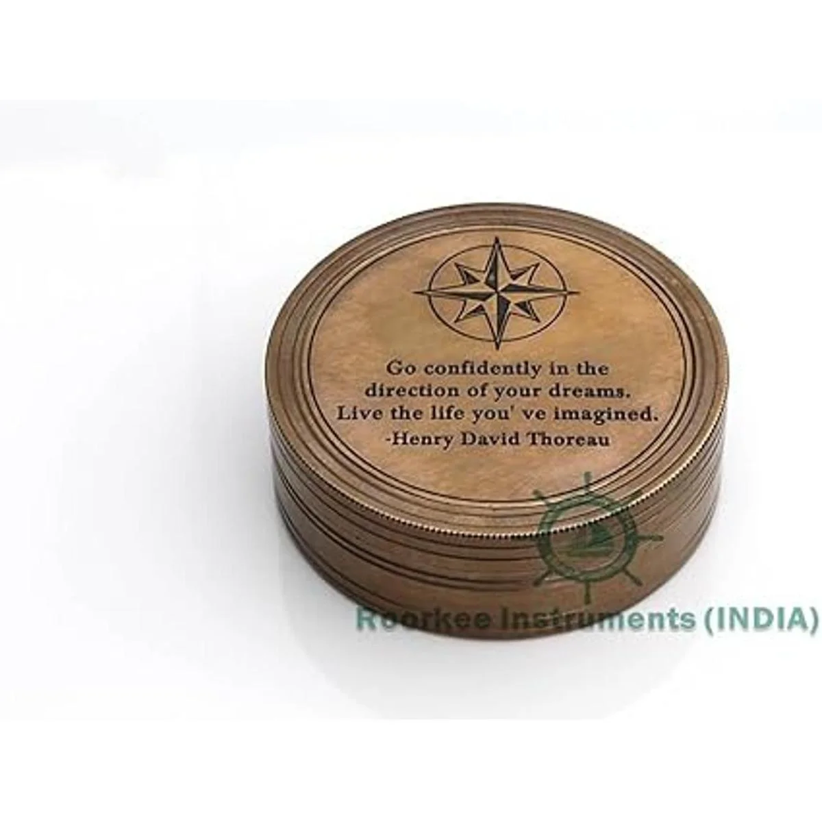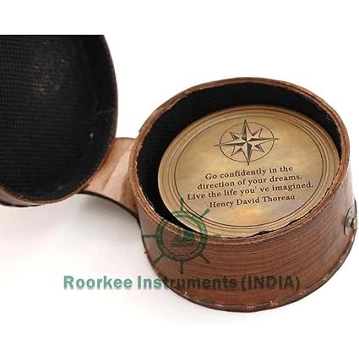 Roorkee Instruments Reloj de pulsera magnético direccional vintage náutico antiguo con cita de bolsillo, regalo grabado con funda de cuero, hijo, amor Henry David Thoreau Go Confidently in The Direction