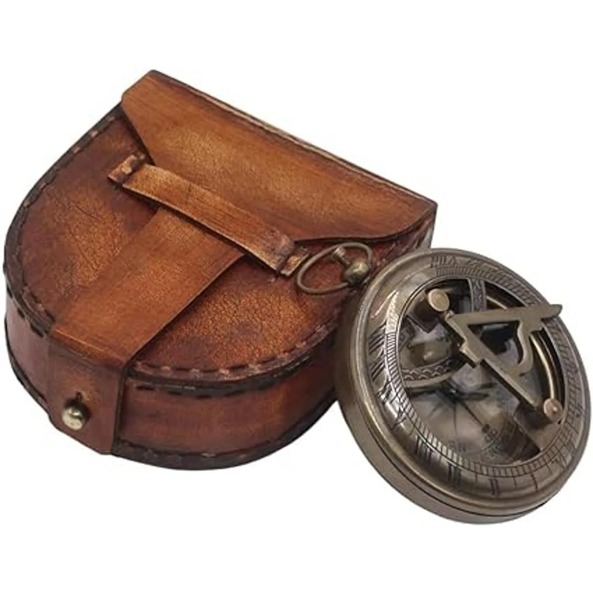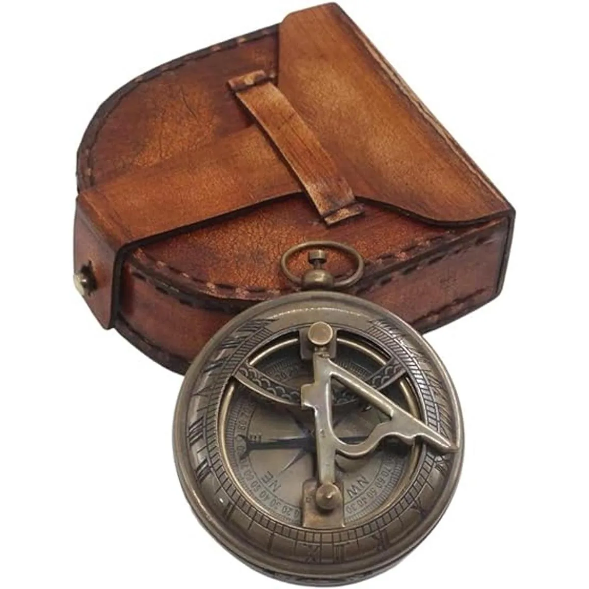 Roorkee Instruments Reloj magnético direccional, diseño náutico antiguo, vintage, con bolsillo para reloj de sol, brújula marina, regalos esenciales de bautismo con funda de cuero para seres queridos, hijo, amor, pareja, cónyuge, prometido de 2.8 pulgadas