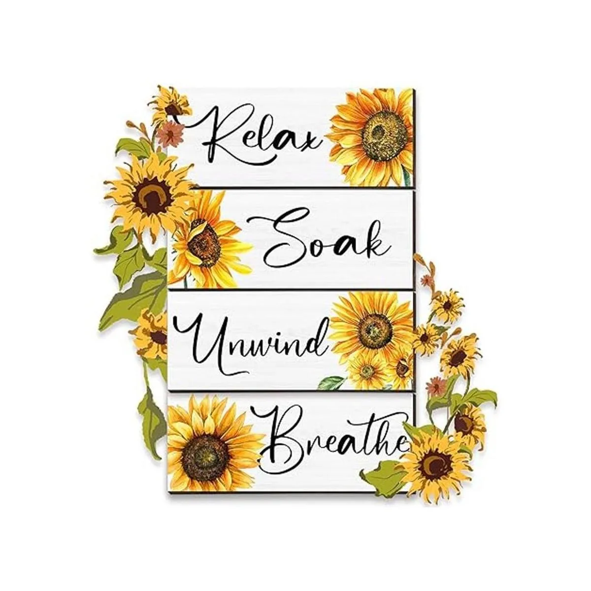 Roowest Letreros de madera para relajarse y relajarse, relajarse, remojar y relajarse, diseño de girasol, girasol, decoración de pared de madera rústica para baño, decoración del hogar, decoración del hogar, baño, letras, arte de pared para el hogar
