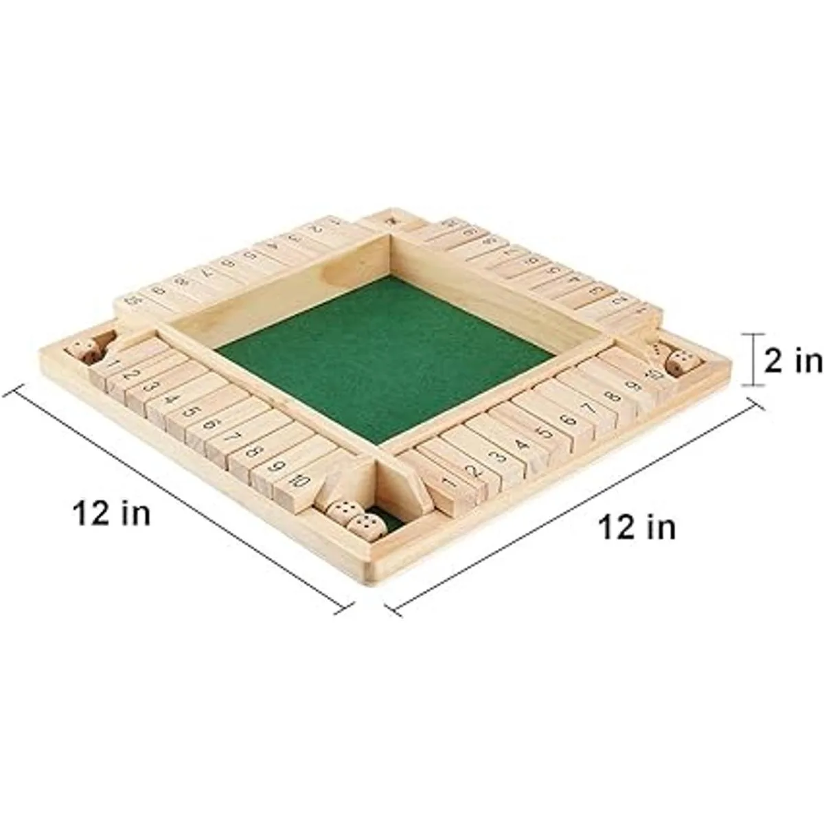 ROPODA Juego de mesa de dados Shut the Box cierra la caja, para 24 jugadores, para niños y adultos Juego de madera grande de 4 caras, 8 dados y reglas sobre el juego idioma español no garantizado. Juego inteligente para aprender más, 12 pulgadas