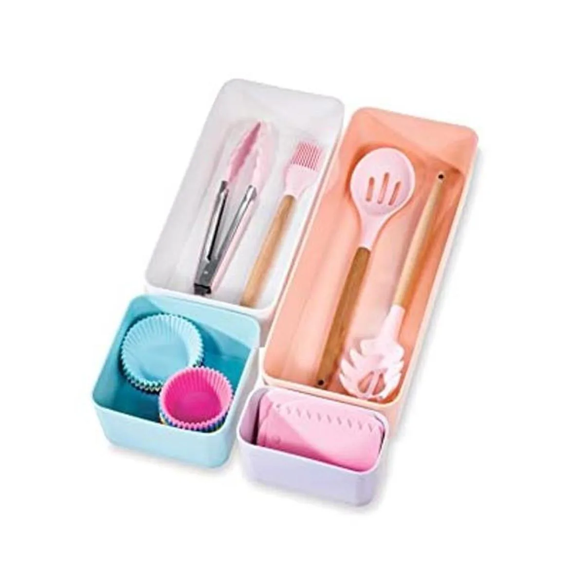 Rosanna Pansino x iDesign Organizador de cajones de plástico reciclado, juego de 4, multicolor