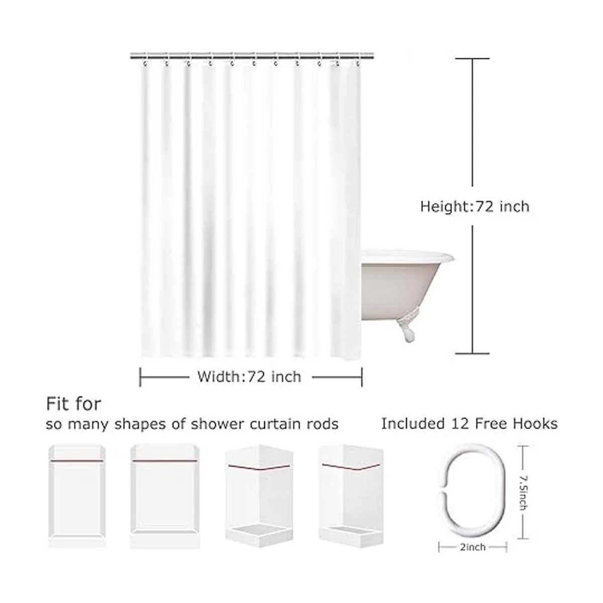 Cómodo y fácil de limpiar: se adapta fácilmente a cualquier ducha/bañera de tamaño estándar y funciona con barras de ducha rectas o curvas. 12 ganchos de plástico blanco cambian fácilmente los ganchos de anillo de cortina de ducha para que coincida con la decoración que te guste.