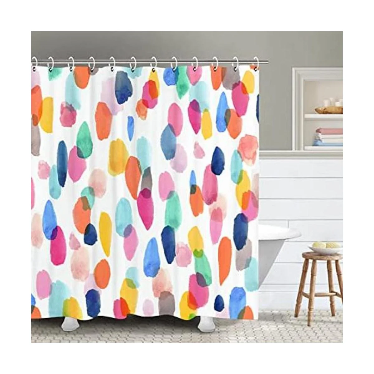 RosieLily Cortina de ducha con círculos de lunares en acuarela, juego de cortinas de ducha para niños con 12 ganchos, impermeable, lavable, decoración de baño, 72 x 72 pulgadas