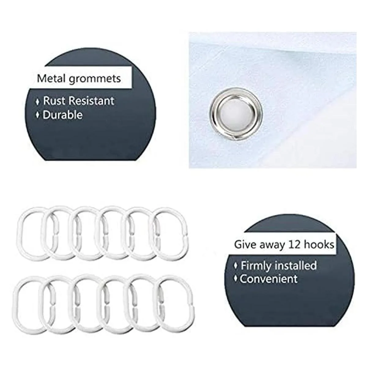 Tamaño estándar: 72 pulgadas de ancho x 72 pulgadas de largo. Adecuado para la mayoría de baños con bañera y recibirás: una cortina de ducha de tela impermeable; 12 ganchos en forma de C incluidos.