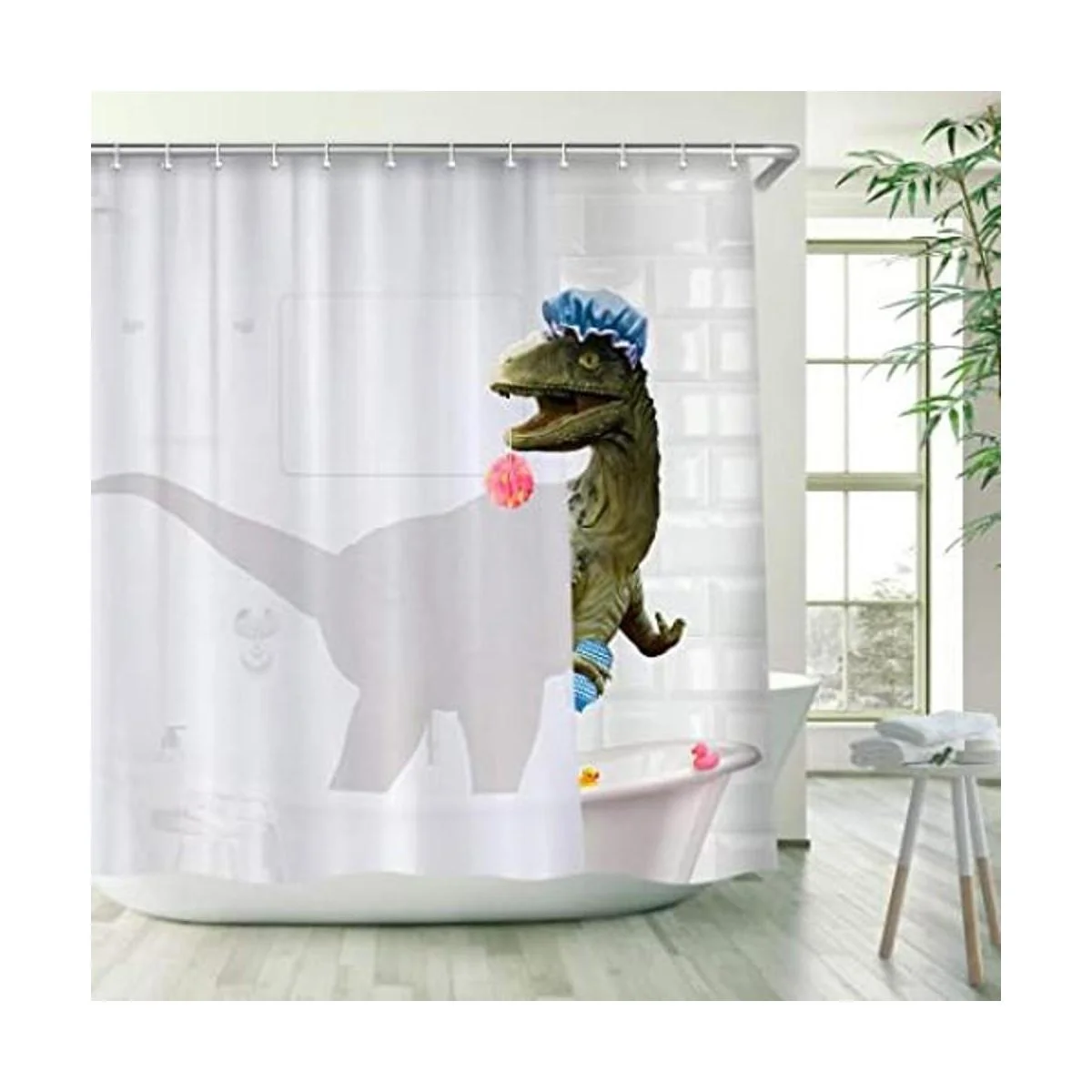 RosieLily Cortina de ducha de dinosaurio, cortina de ducha para niños, divertida cortina de ducha con 12 ganchos, cortina de ducha fresca para decoración de baño, 72 x 72 pulgadas