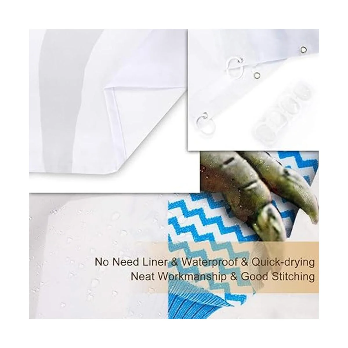 Cortina de ducha única: se adapta fácilmente a cualquier ducha/bañera de tamaño estándar y funciona con barras de ducha rectas o curvas. 12 ganchos de plástico blanco cambian fácilmente los ganchos de anillo de cortina de ducha para que coincida con la decoración que te guste.