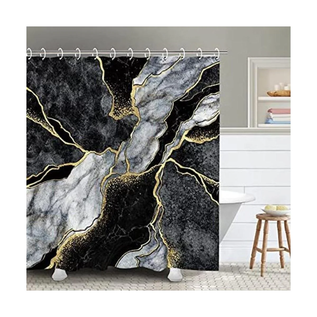 Cortina de ducha de mármol negro: las cortinas de ducha negras con estampado de mármol son adecuadas para cualquier tipo de muebles de baño. Patrón creativo y único que te hace disfrutar de tu tiempo de baño. Tamaño estándar de 72 x 72 pulgadas que se adapta a la mayoría.
