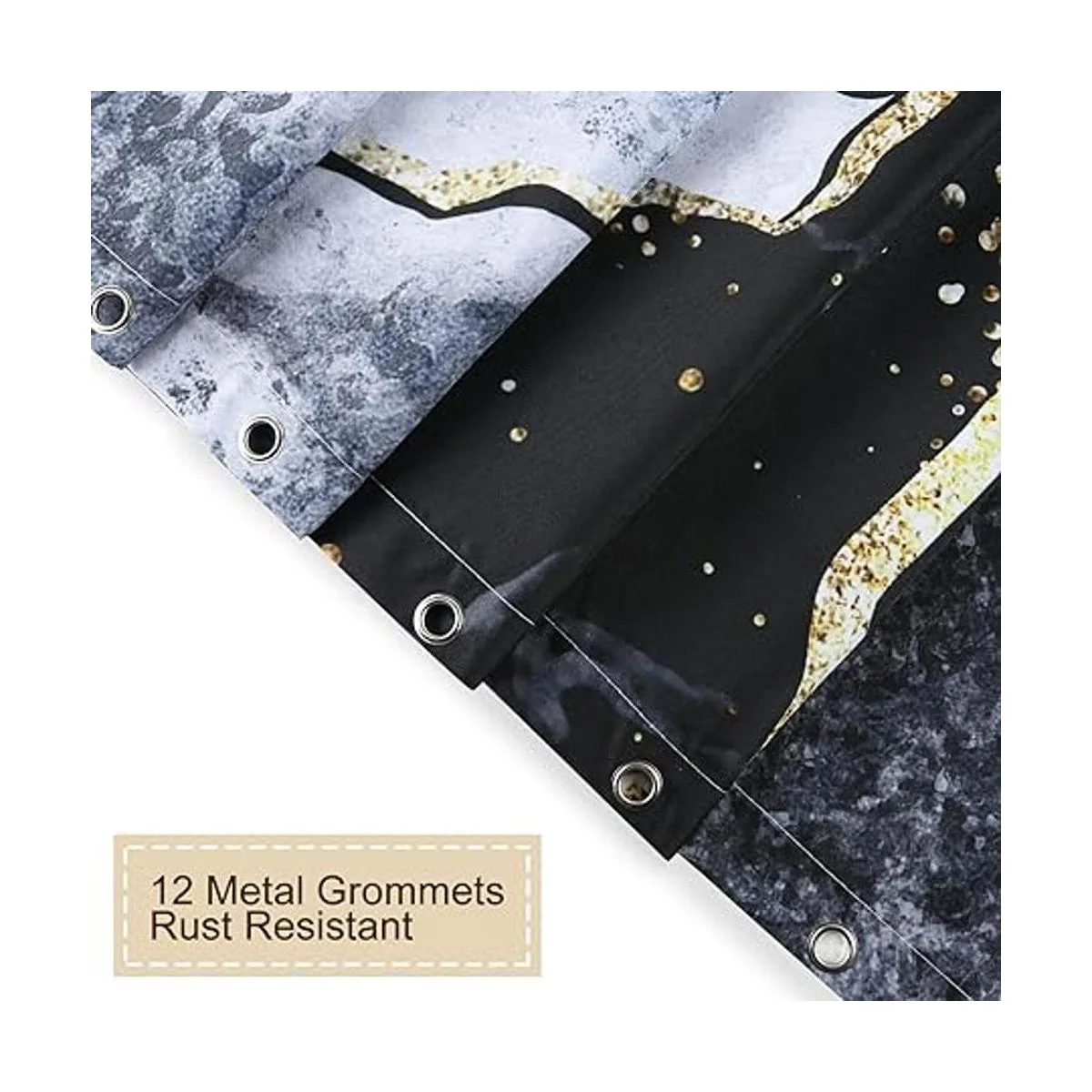 Cortina de ducha de mármol: el dobladillo superior reforzado en la parte inferior evita que la cortina se mueva manteniendo el agua dentro y el aire frío fuera. La tela súper repelente al agua está tratada para dejar que las cuentas de agua permanezcan en la superficie, rápida de repeler y secar.