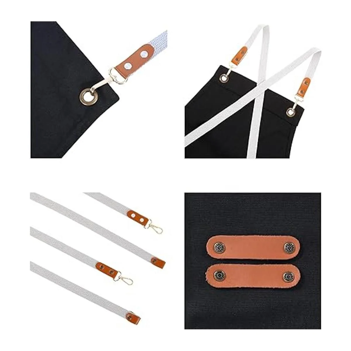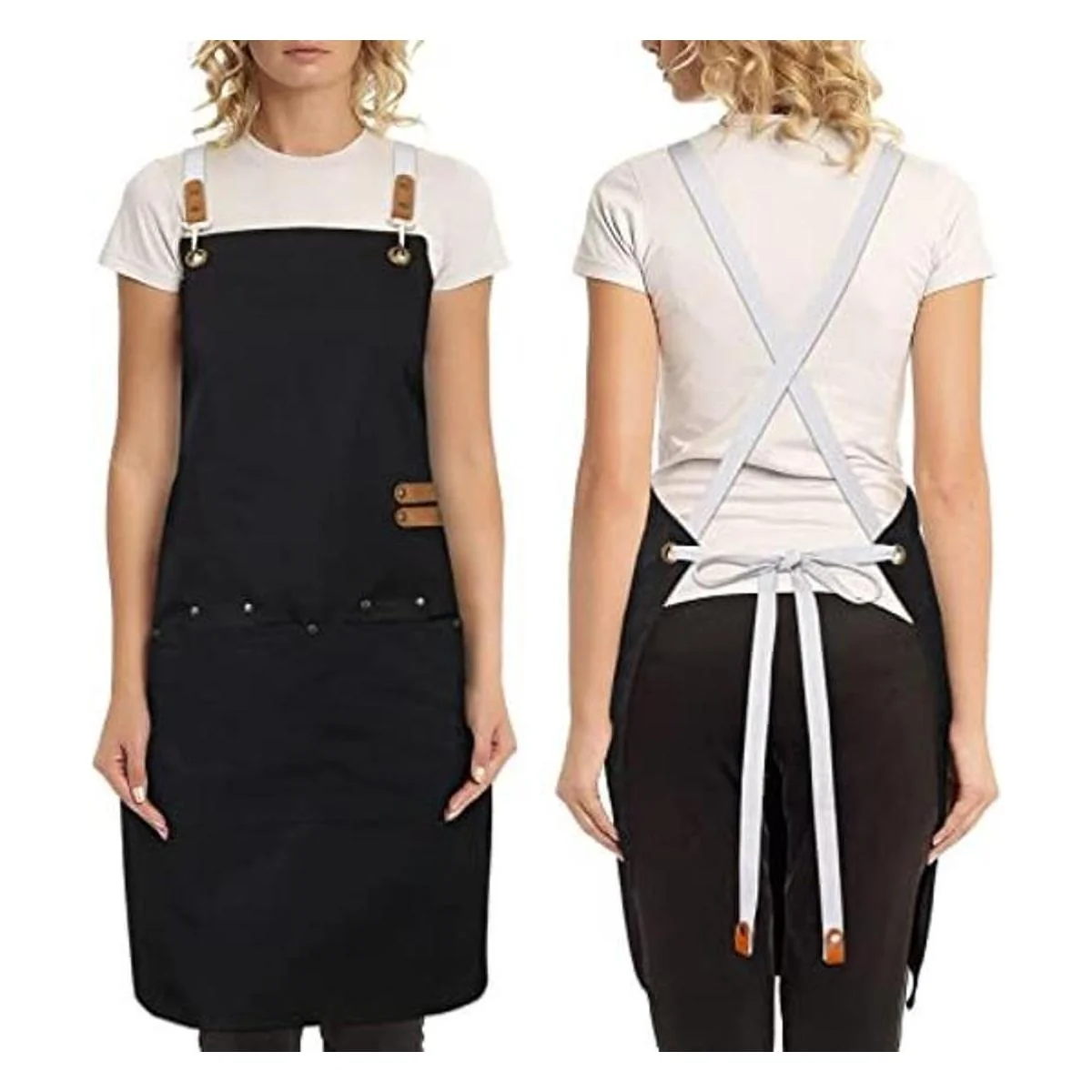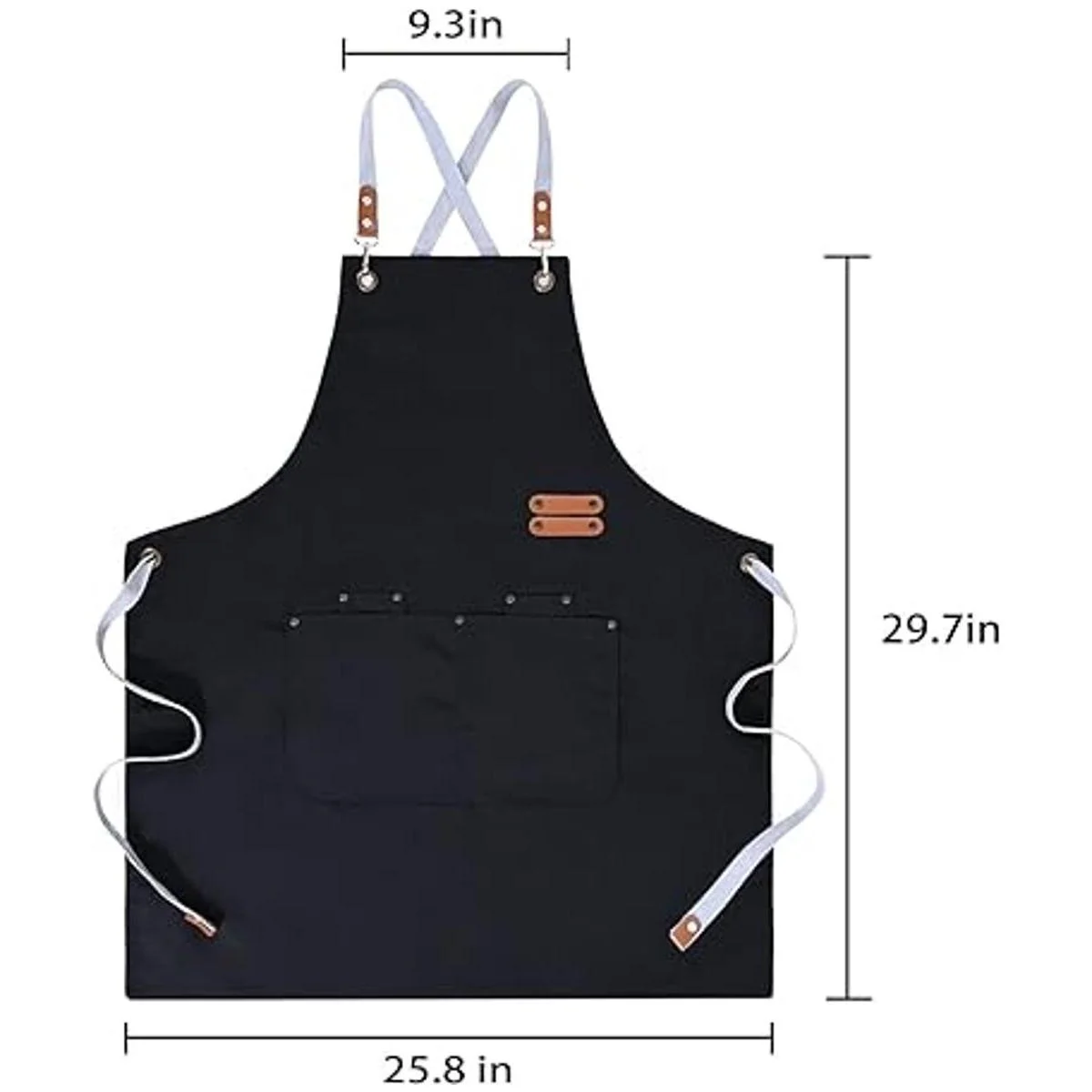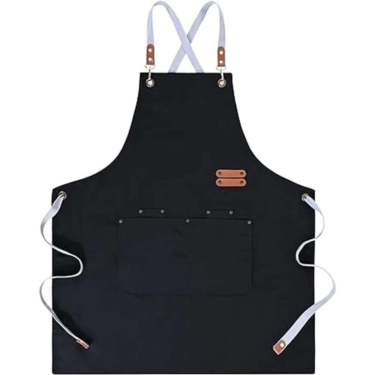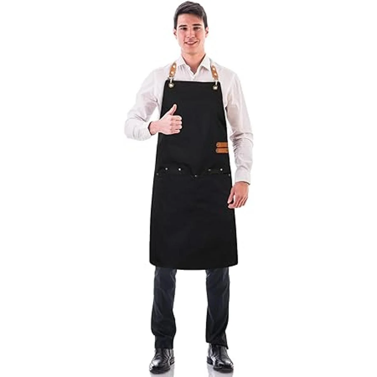 Delantal con espalda cruzada: diseño único de espalda cruzada con una correa ajustable para el cuello para el uso más cómodo. El delantal negro para hombre se puede modificar fácilmente para adaptarse a la mayoría de tamaños.