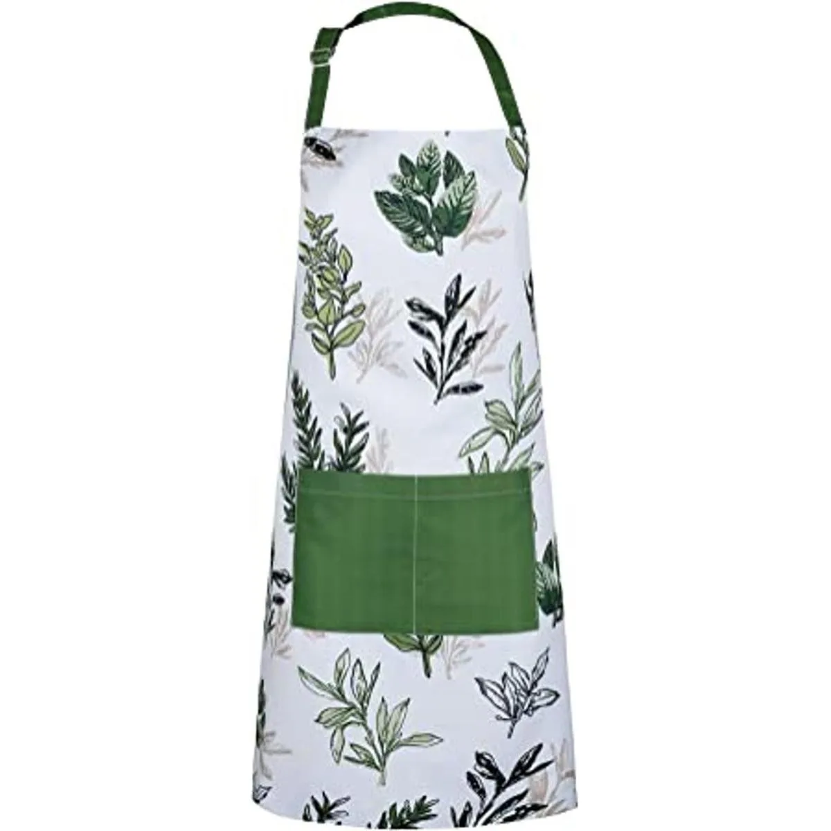 Delantal verde: diseño único de hierbas, correa ajustable para el cuello y correa larga para la cintura son adecuados para el uso más cómodo. El delantal de cocina de 27 x 32 pulgadas se puede alterar fácilmente para adaptarse a la mayoría de tamaños.