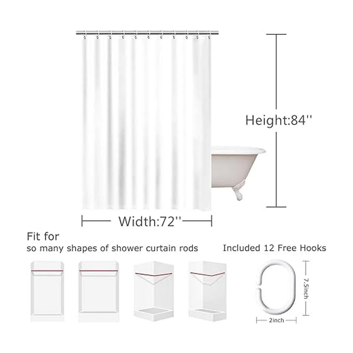 Cómodo y fácil de limpiar: se adapta fácilmente a cualquier ducha/bañera de tamaño estándar y funciona con barras de ducha rectas o curvas. 12 ganchos de plástico blanco, cambia fácilmente los ganchos de anillo de cortina de ducha para que coincida con la decoración que te guste.
