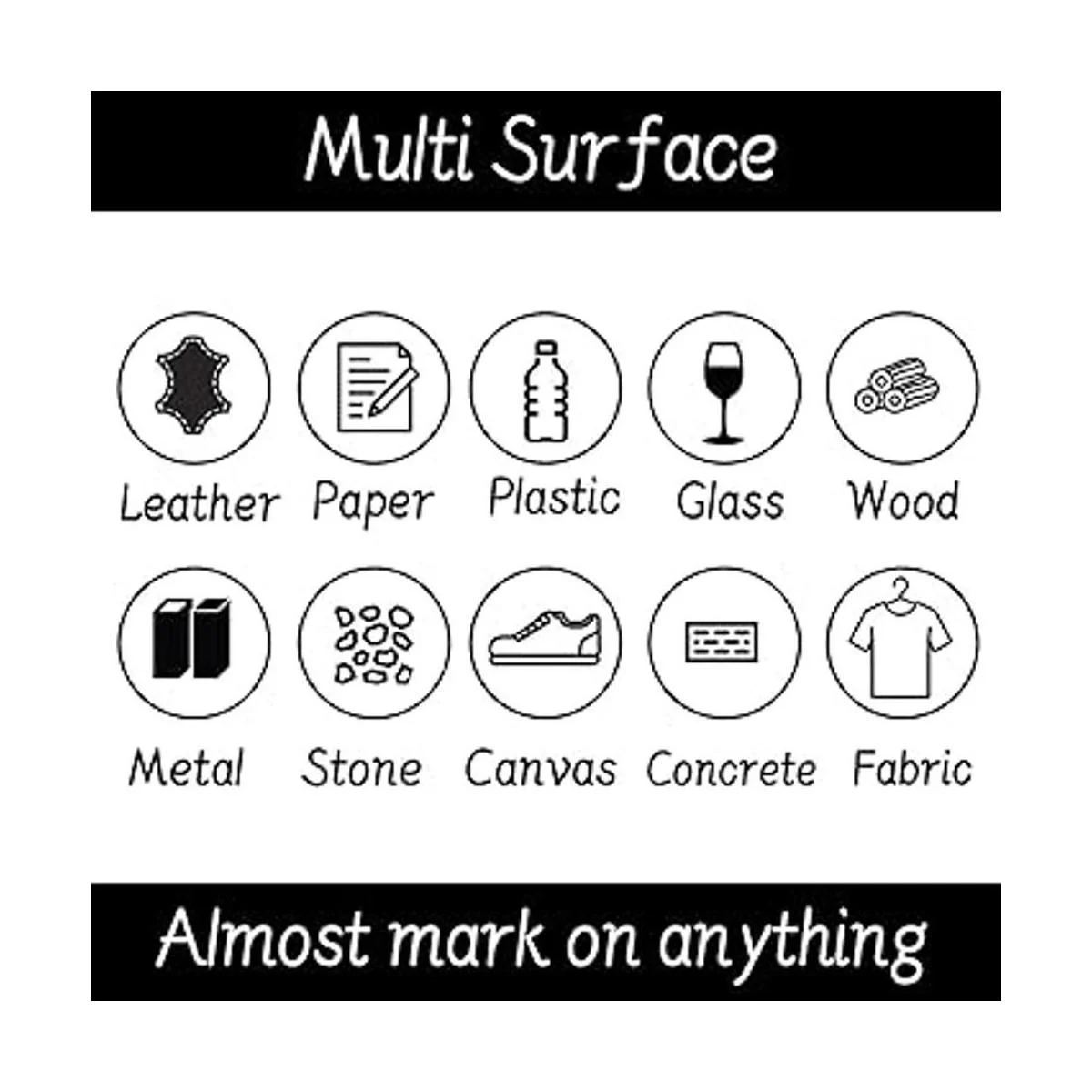 Versátil: este bolígrafo de pintura permanente es la mejor opción para trabajar en múltiples superficies. Se puede utilizar en pintura de roca, cerámica, madera, cuero, plástico, tela, lienzo, piedra, vidrio, metal, pizarra, suministros de manualidades, etc.