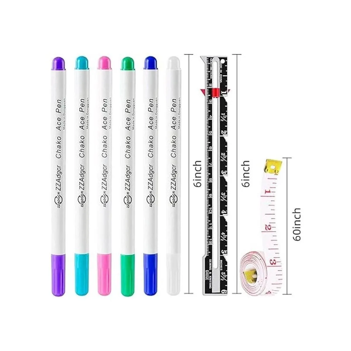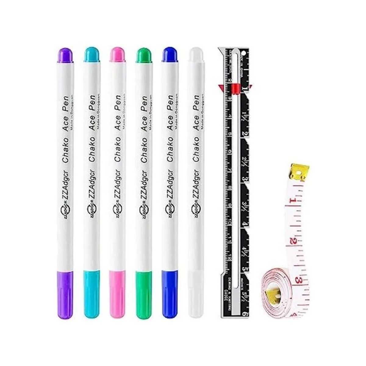 Rotuladores de tela, 6 rotuladores de colores solubles en agua, 1 herramienta de medición de costura de calibre, 1 cinta métrica suave, para bolígrafo de tinta que desaparece de sastres, marcadores de tela de costura y herramientas de trazado