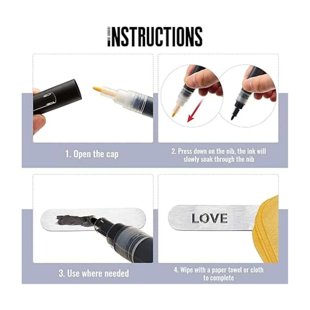 Tamaño de sujeción adecuado: cada marcador de pintura negro satinado mide aproximadamente 5.602 x 0.591 in, peso ligero y el tamaño adecuado es cómodo de sostener, te permite disfrutar del proceso de estampado de metal