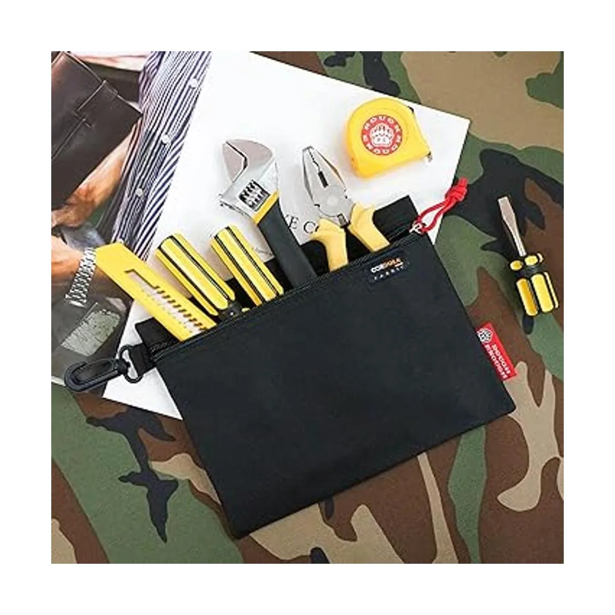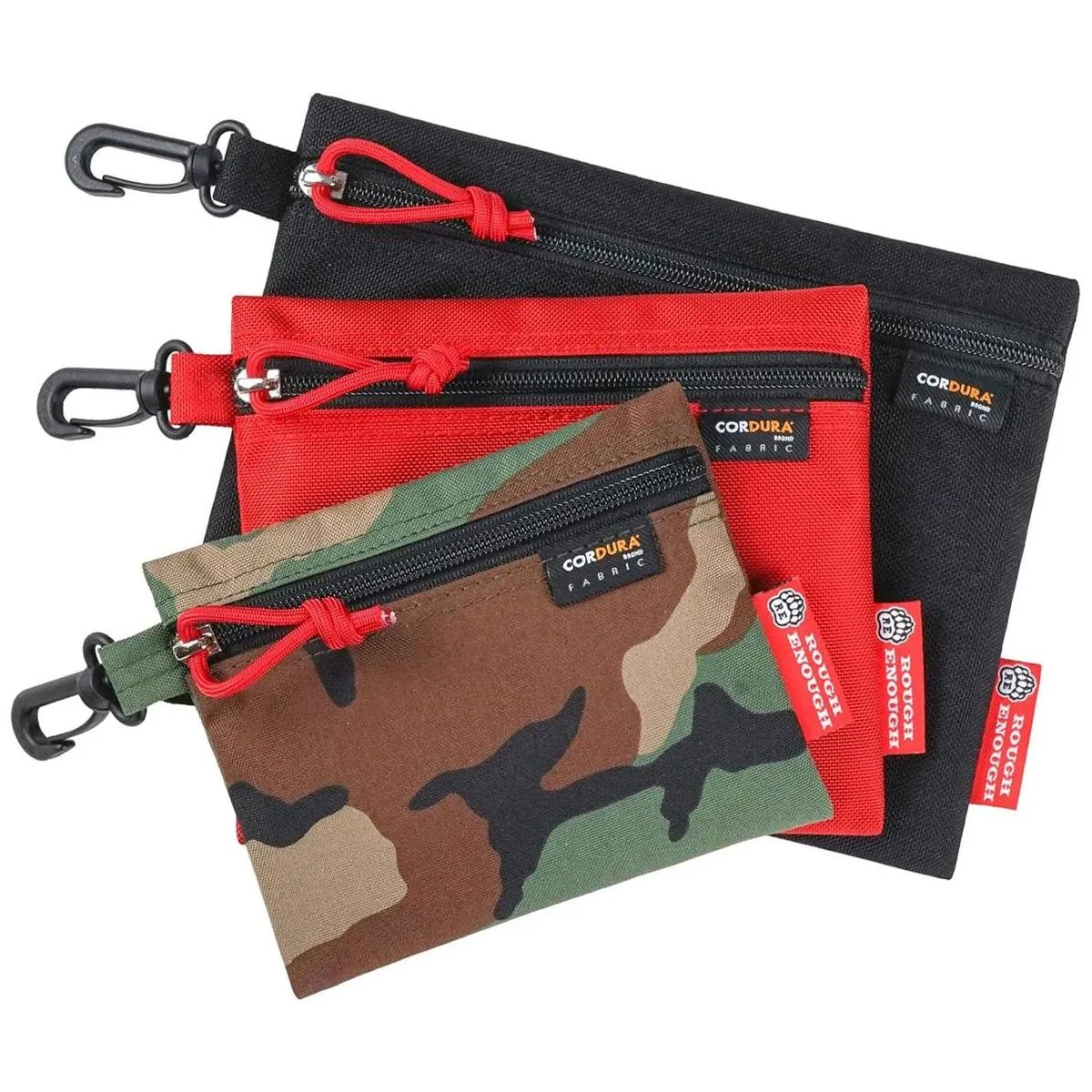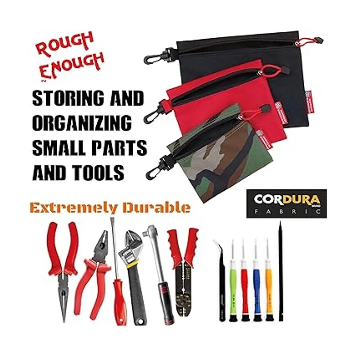 Rough Enough Organizador de bolsa de herramientas pequeña con cremallera y clip de almacenamiento, piezas pequeñas para el hogar, oficina, escuela, paquete de 3 unidades