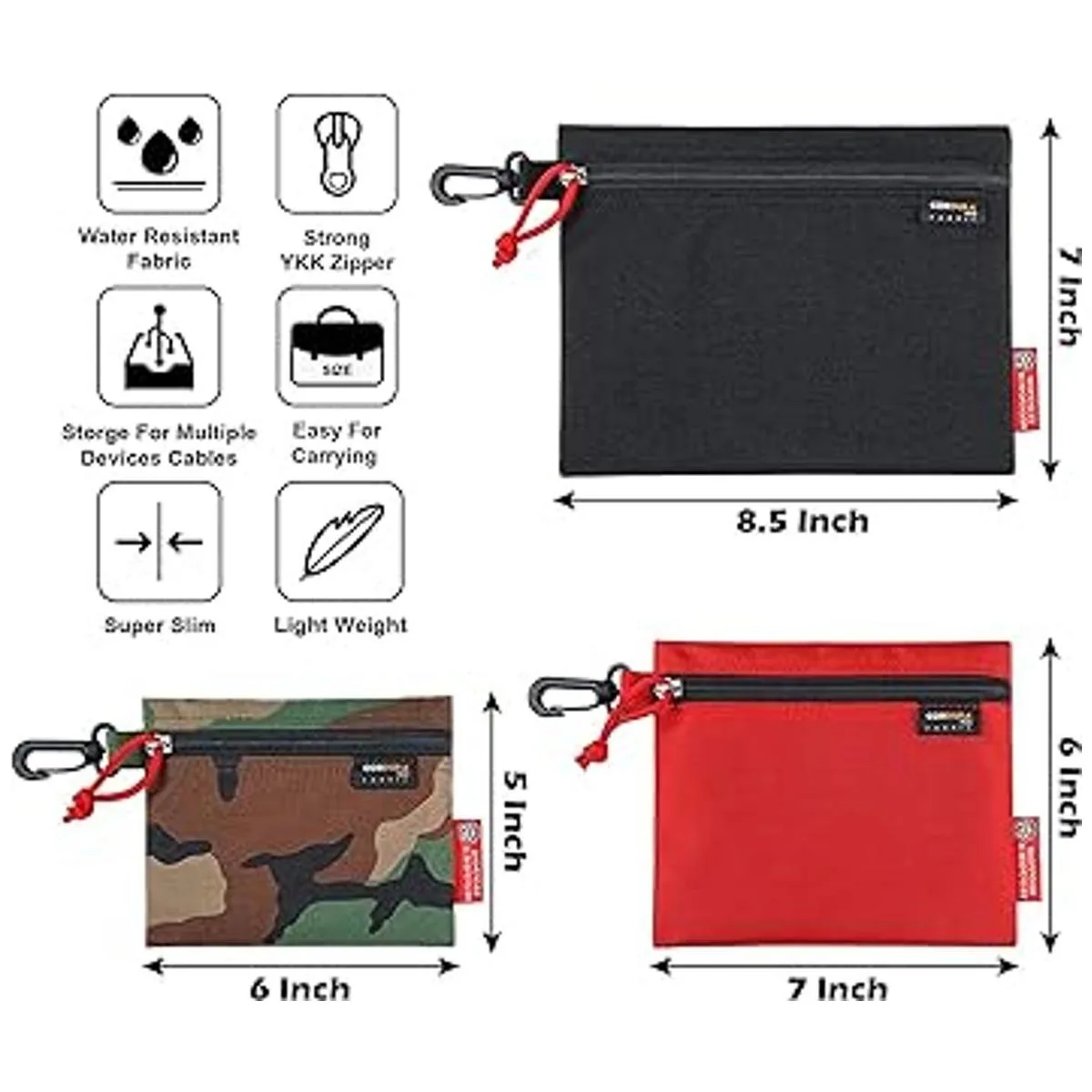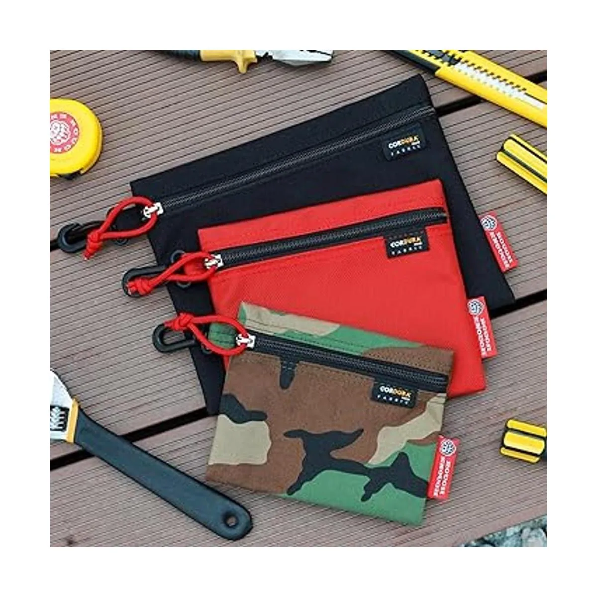 Juego de bolsas pequeñas para herramientas en 3 tamaños diferentes: 6 x 5 pulgadas camuflaje, 7 x 6 pulgadas rojo, 8.5 x 7 pulgadas negro