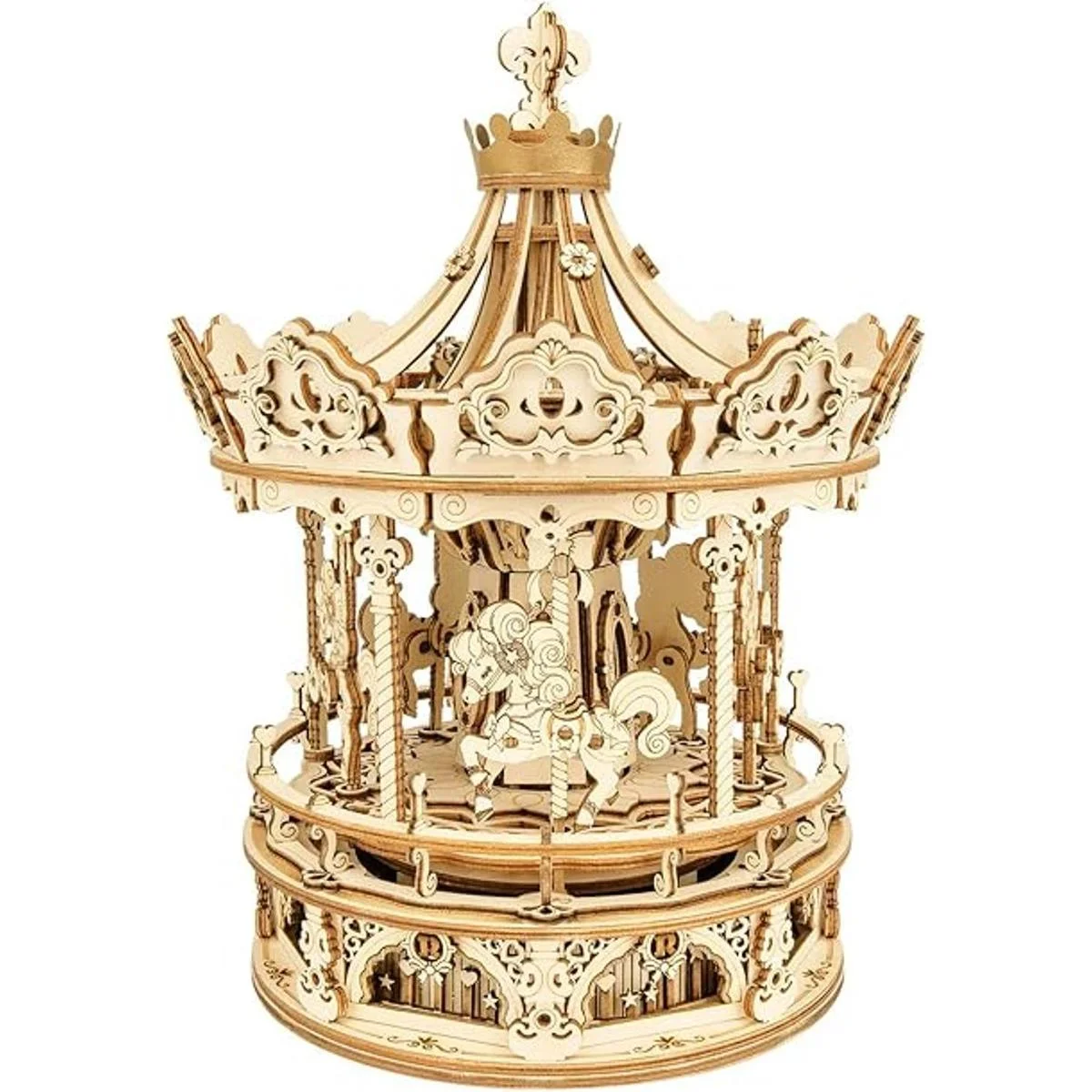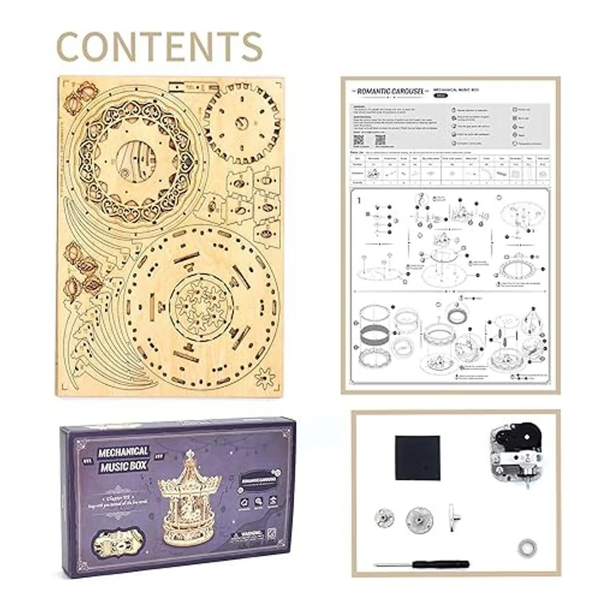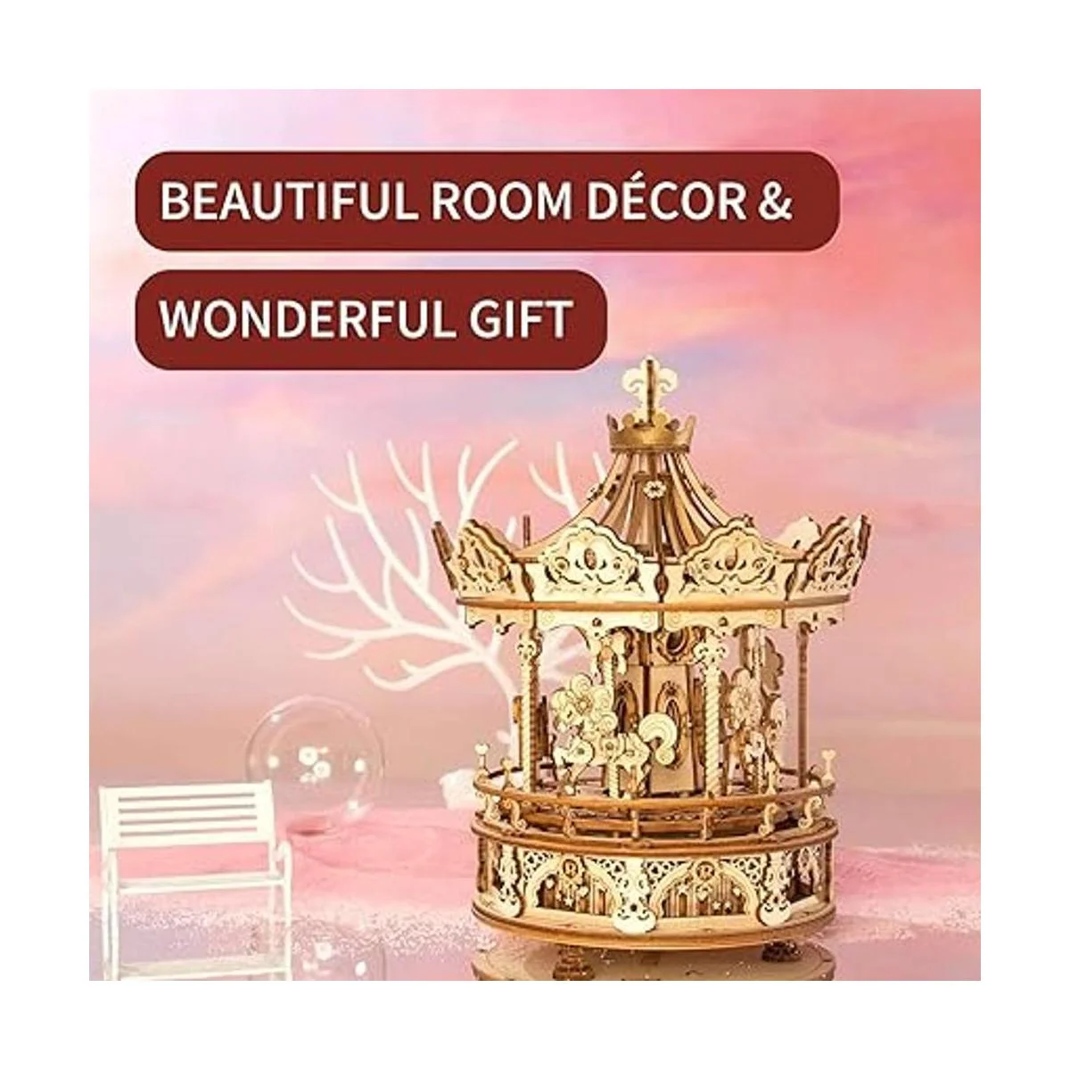 RoWood Caja de música, rompecabezas 3D para adultos, juguetes mecánicos de madera para que armes tú mismo, regalos en cumpleaños, día de San Valentín, Navidad, carrusel romántico