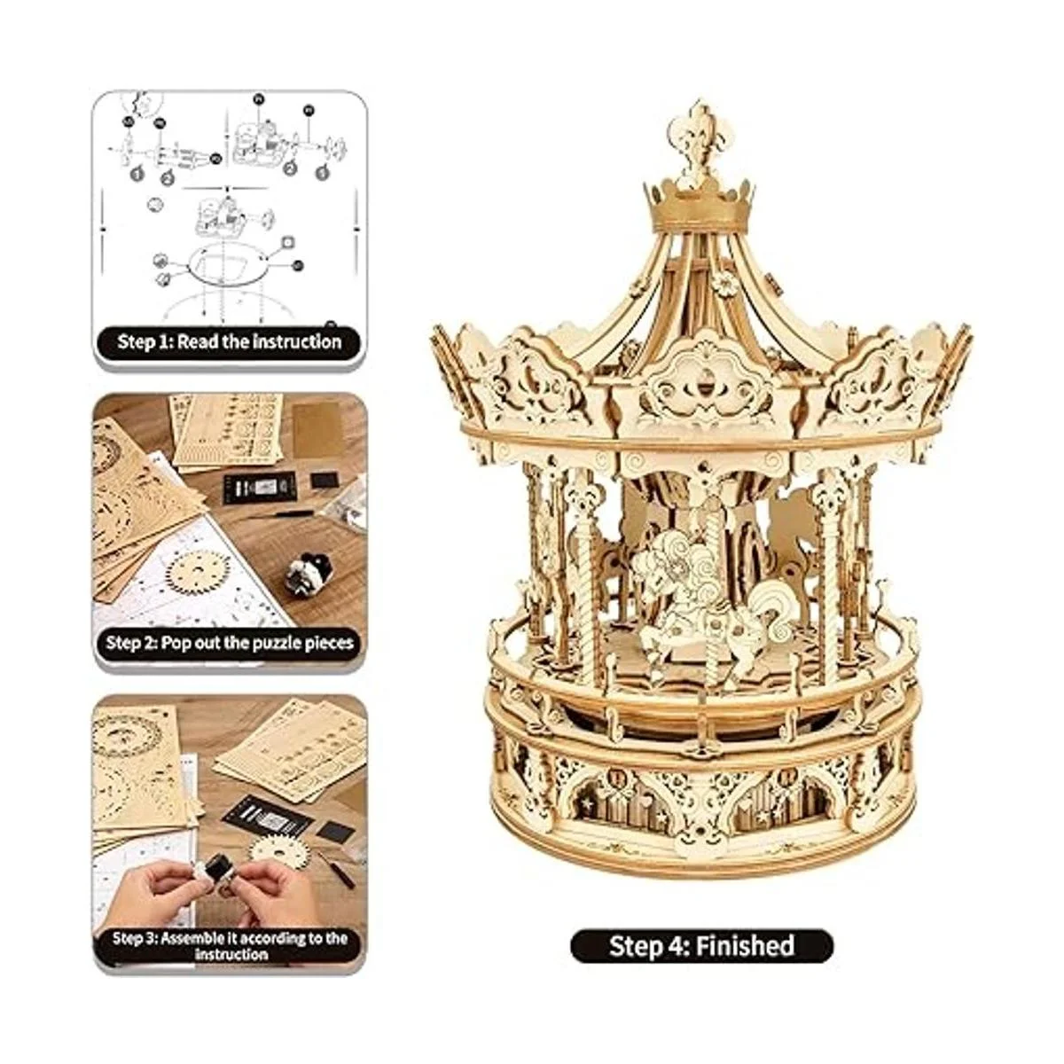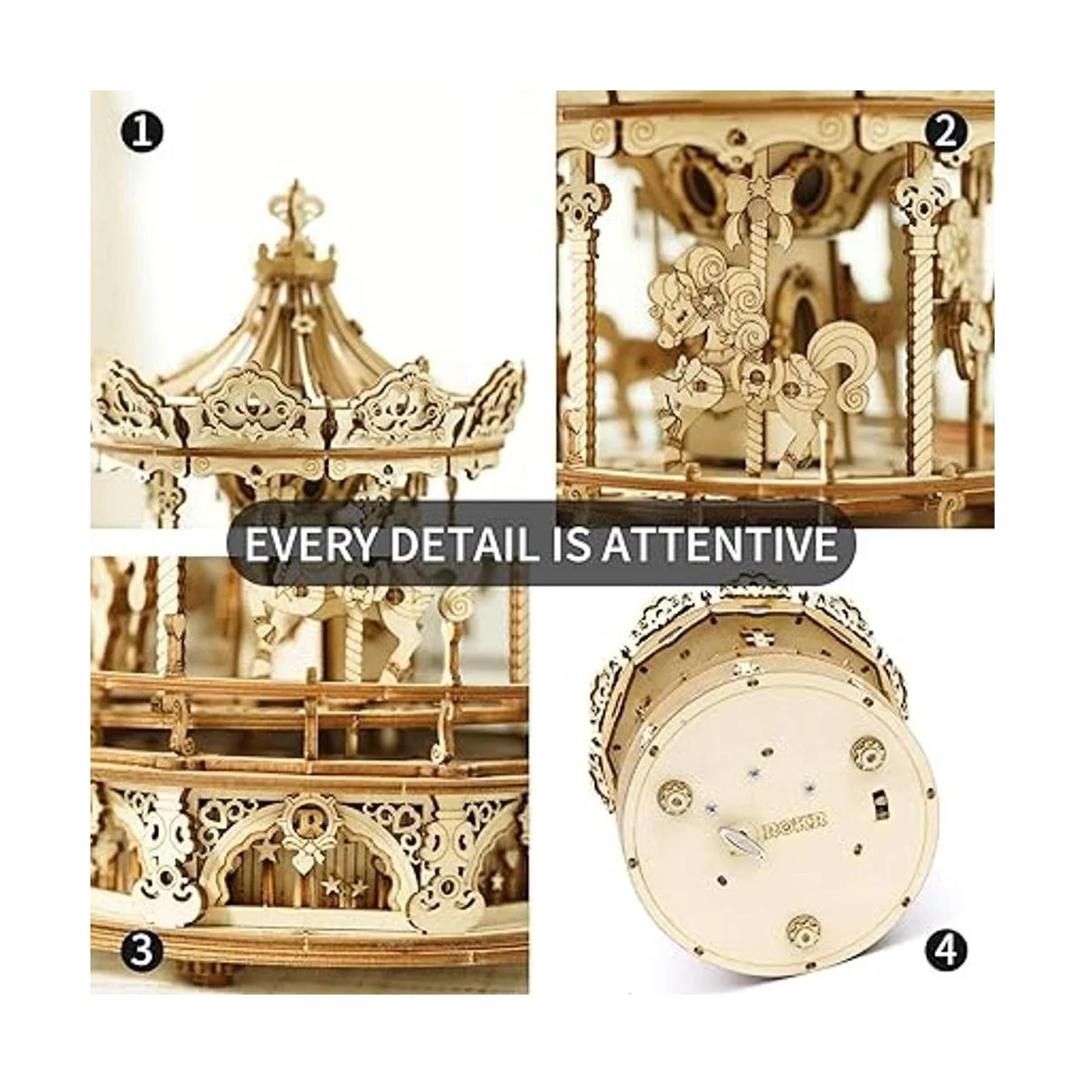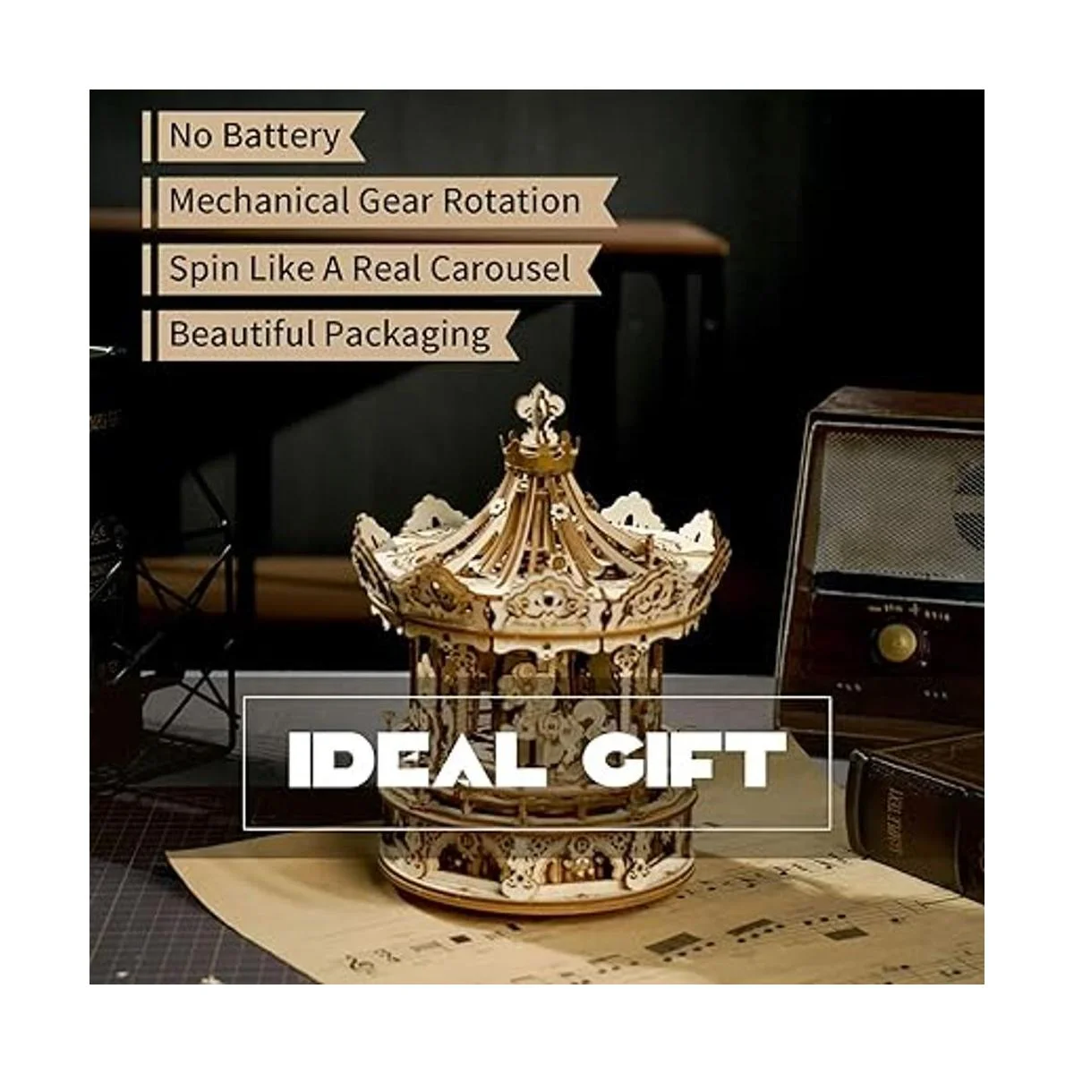 RoWood Caja de música, rompecabezas 3D para adultos, juguetes mecánicos de madera para que armes tú mismo, regalos en cumpleaños, día de San Valentín, Navidad, carrusel romántico