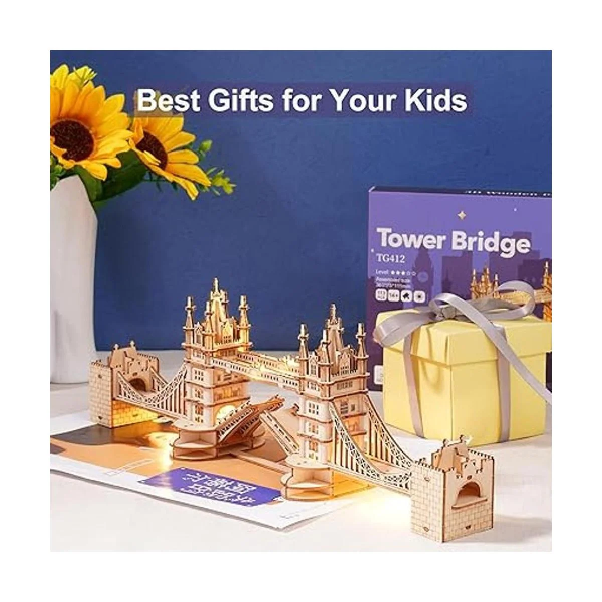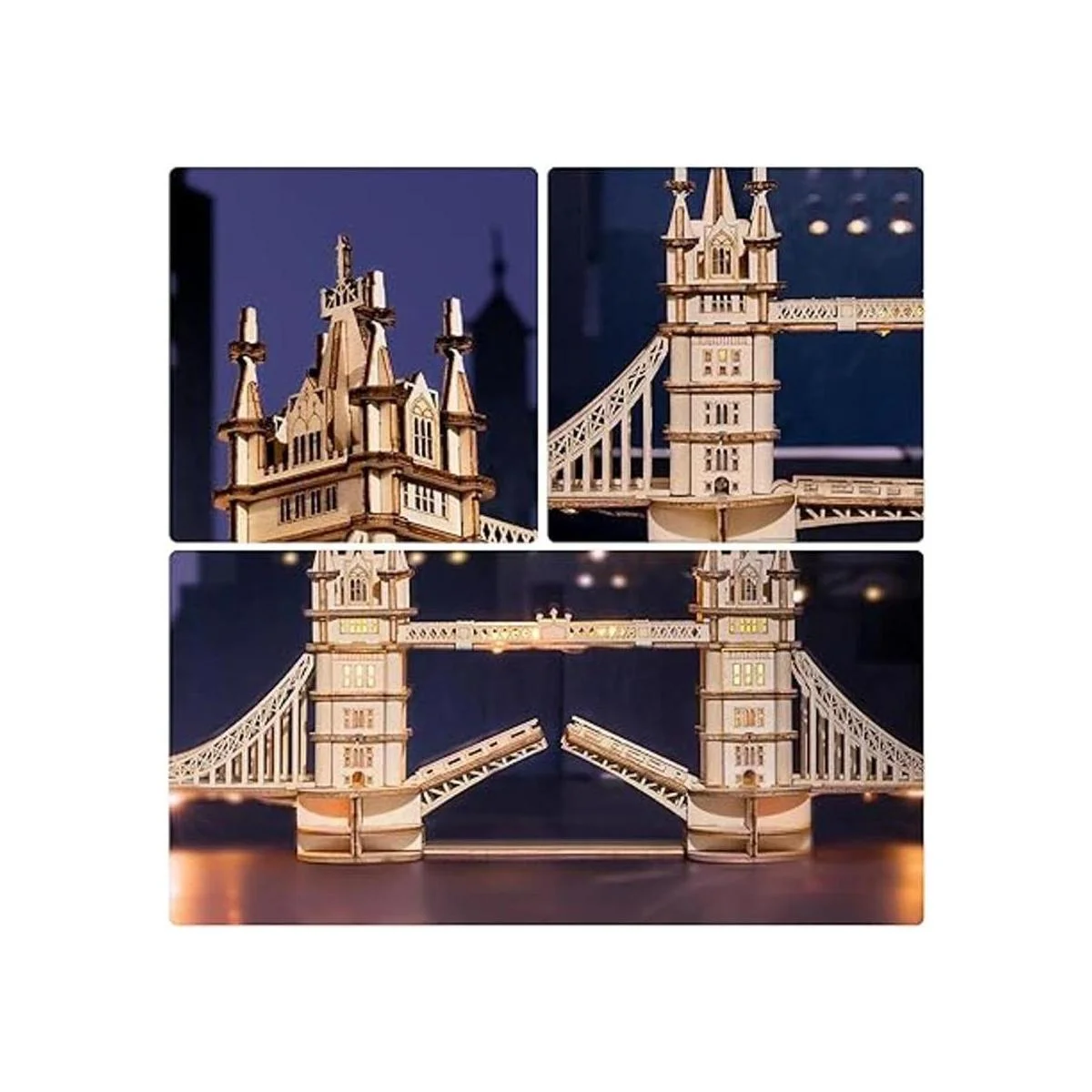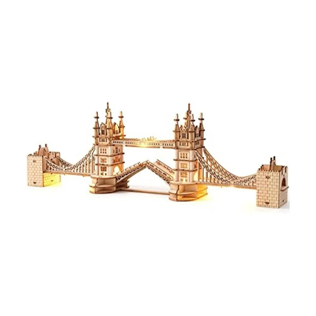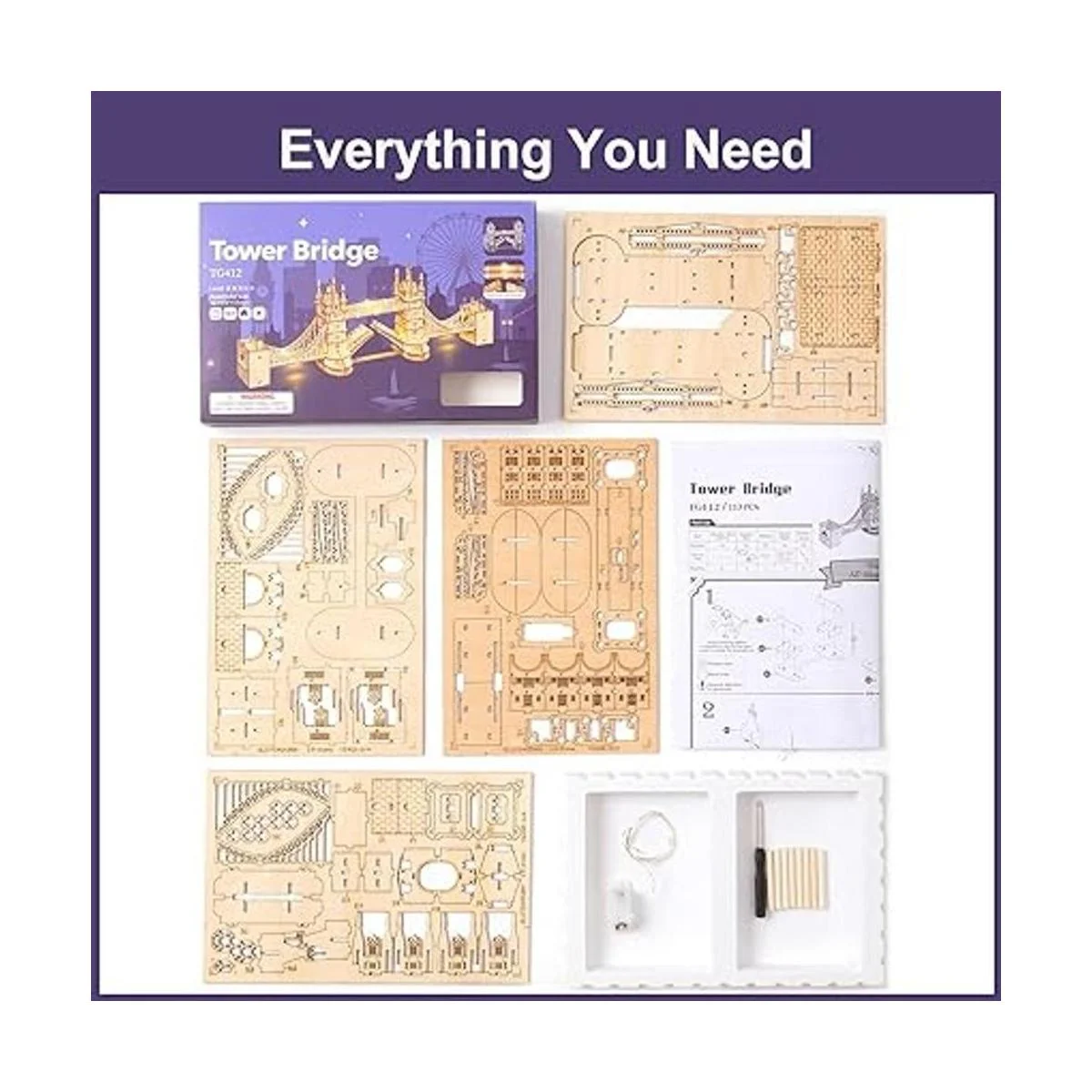 Rowood Rompecabezas 3D para adultos, kit de manualidades de puente de torre de madera con LED, para adolescentes