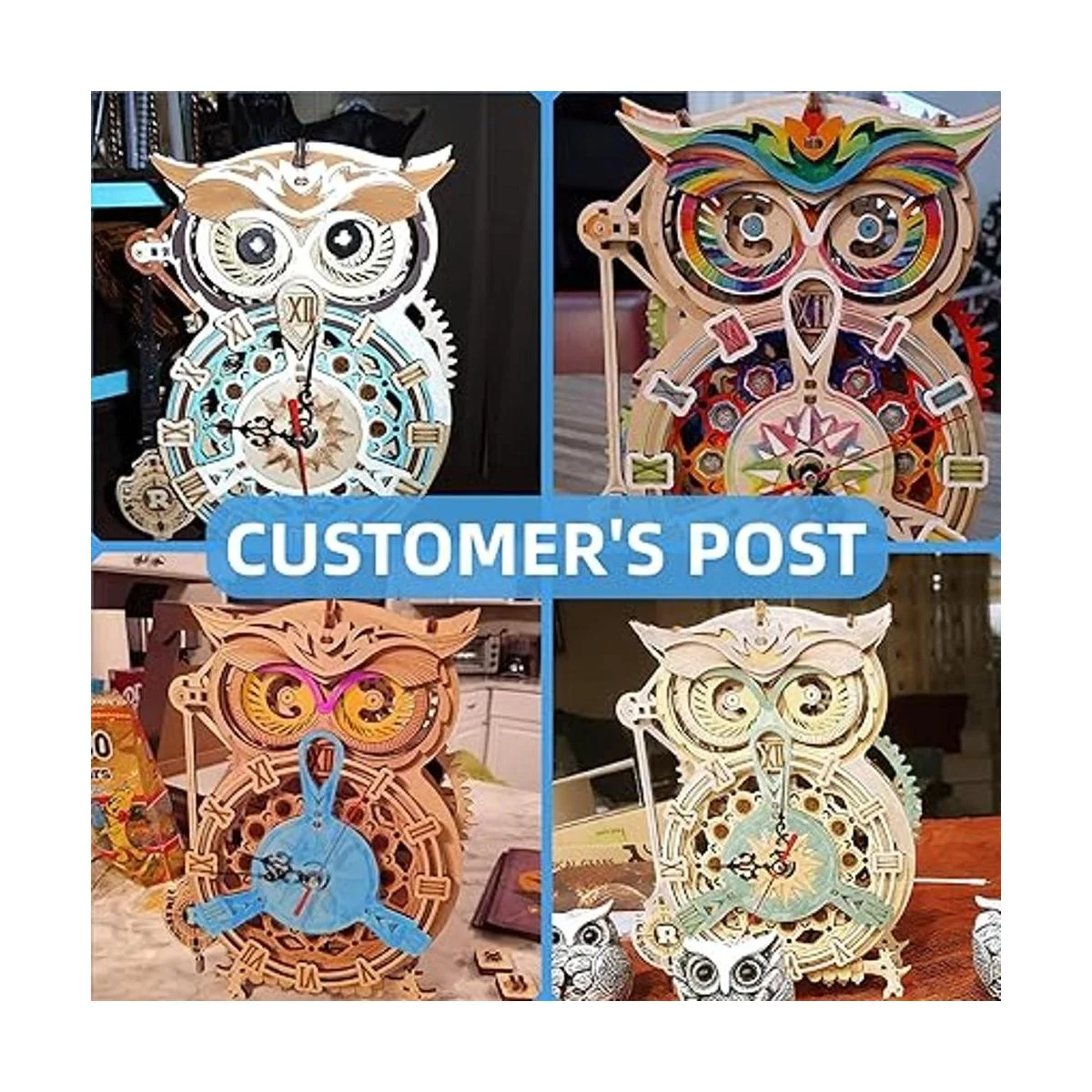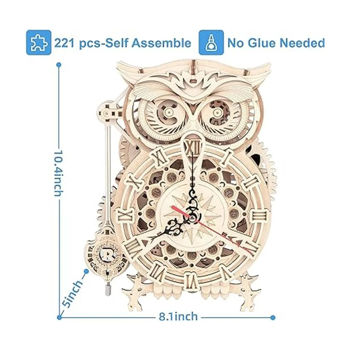 RoWood Rompecabezas 3D para adultos, reloj de búho de madera, kit de modelo de equipo mecánico, regalo para adultos y adolescentes 161 piezas