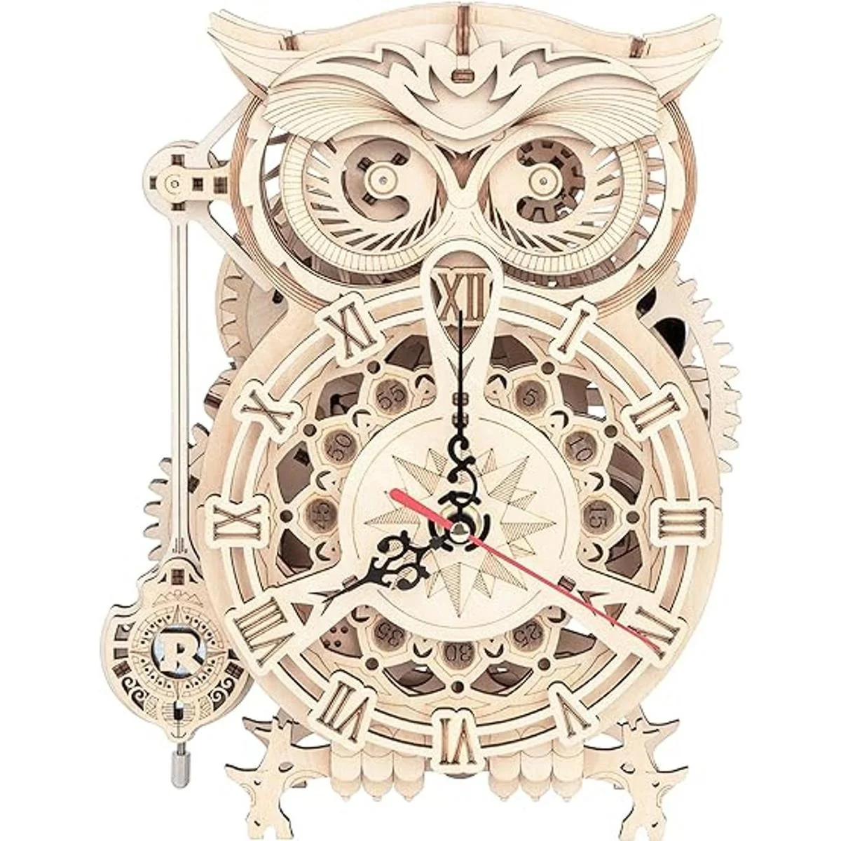RoWood Rompecabezas 3D para adultos, reloj de búho de madera, kit de modelo de equipo mecánico, regalo para adultos y adolescentes (161 piezas)