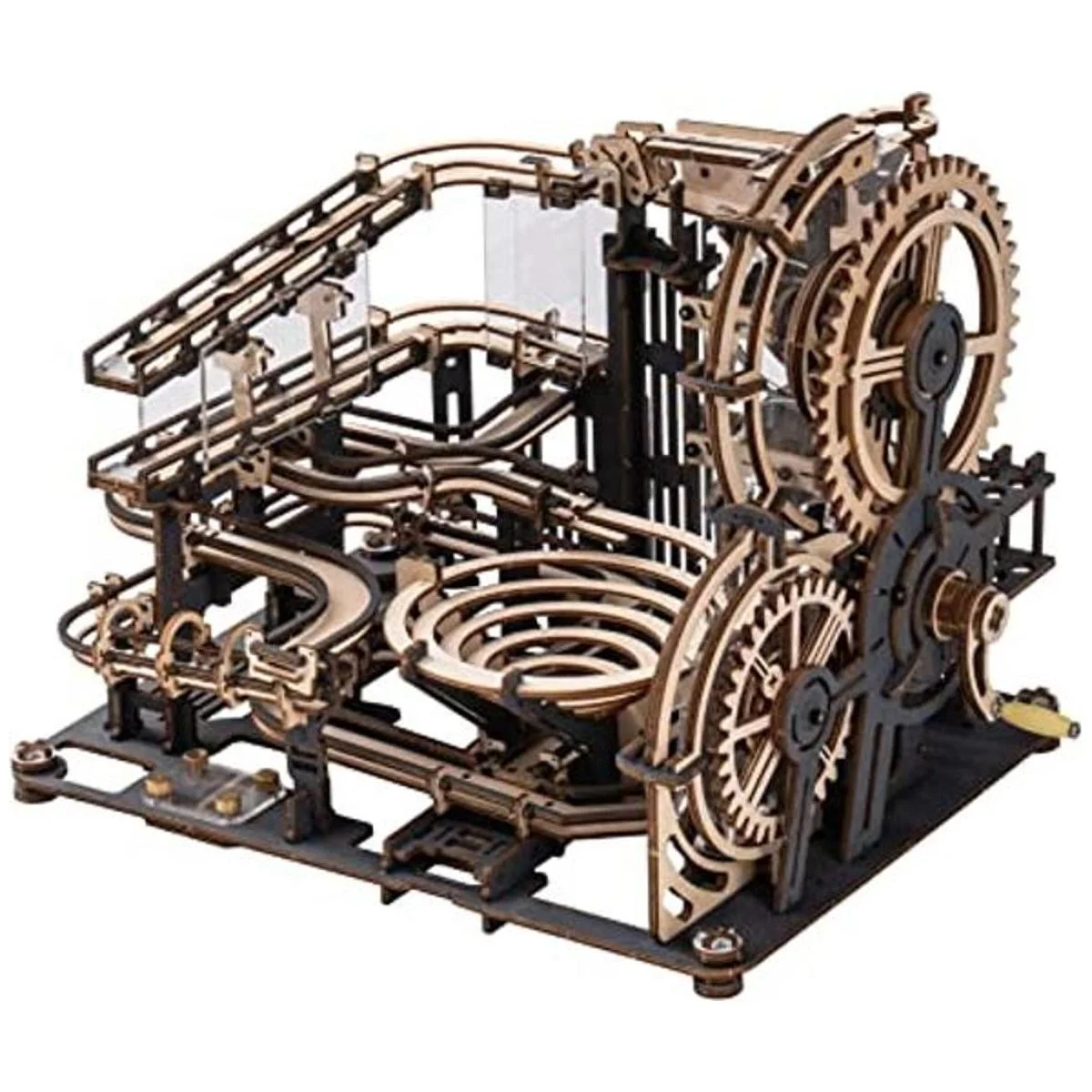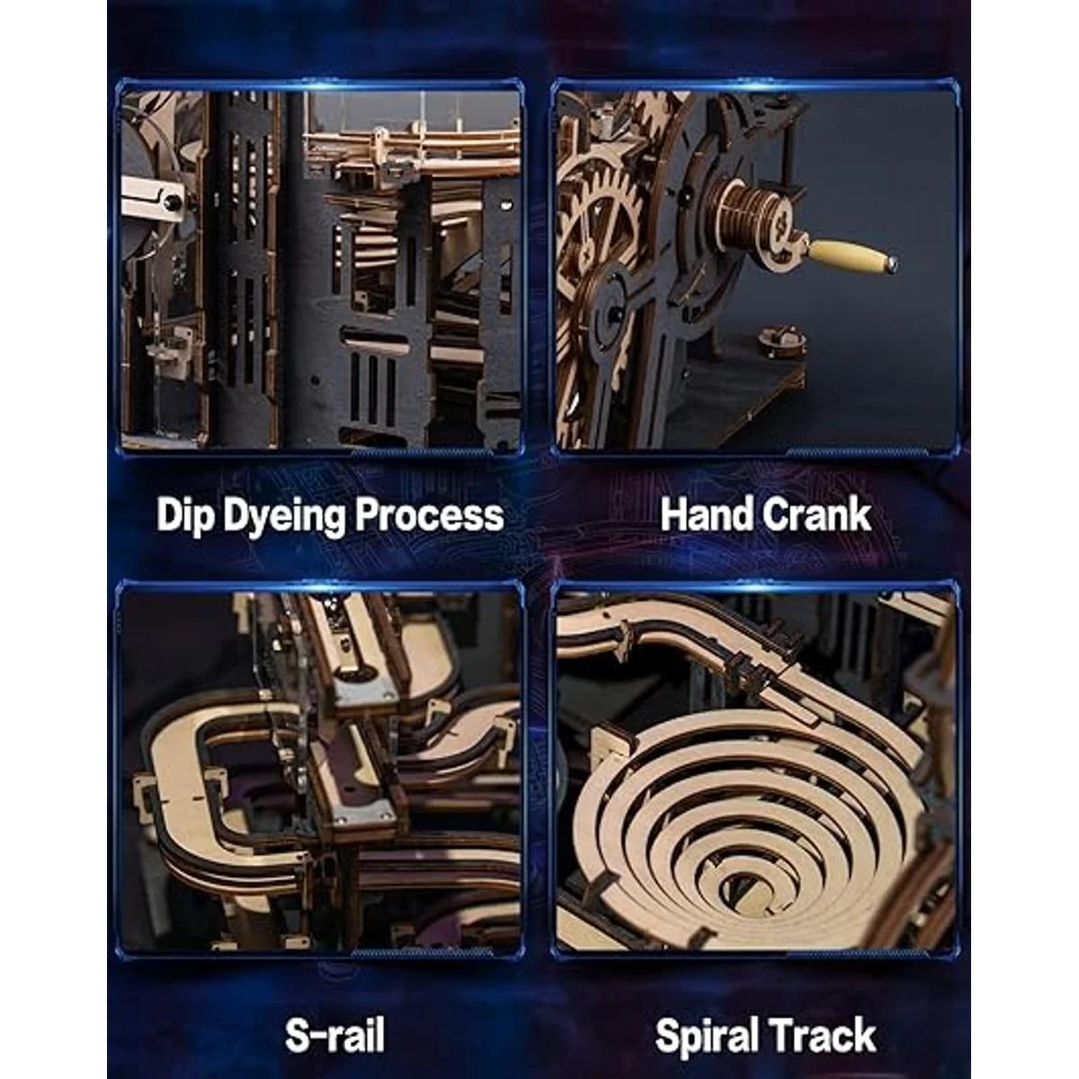 Múltiples maneras de jugar: este kit de modelo mecánico de madera de mármol te traerá una experiencia de usuario altamente satisfactoria y educativa. Gira la manivela, las canicas de acero seguirán 3 caminos diferentes para lograr la caída de gravedad. Cada elección accidental o condenada de camino creará docenas de diversión para ver.