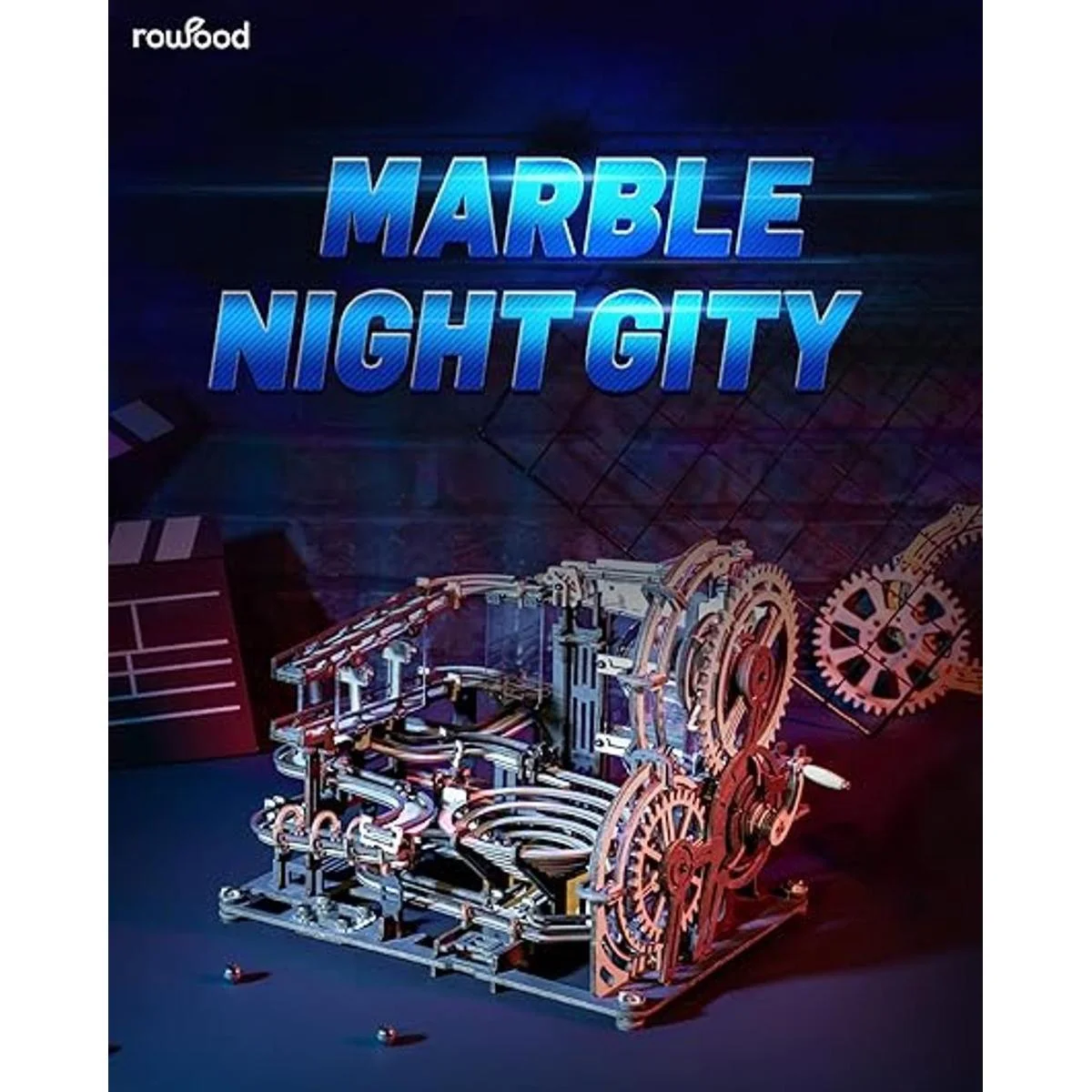 RoWood Rompecabezas de madera 3D Marble Run para adultos, kits de modelos mecánicos, regalos de cumpleaños de Navidad para adolescentes, ciudad nocturna de mármol