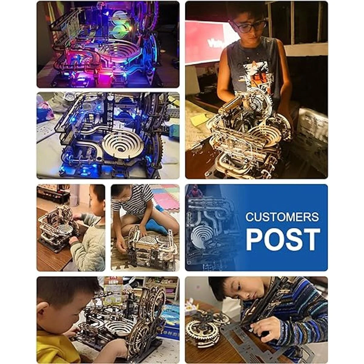 Modelo de carreras de mármol: el kit de modelo de rompecabezas de madera 3D de mármol de 294 piezas está inspirado en la máquina Rube Goldberg, con el objetivo de ver canicas corriendo hacia abajo deslizamientos llenos de giros locos y giros a través de dispositivos difíciles y divertidos