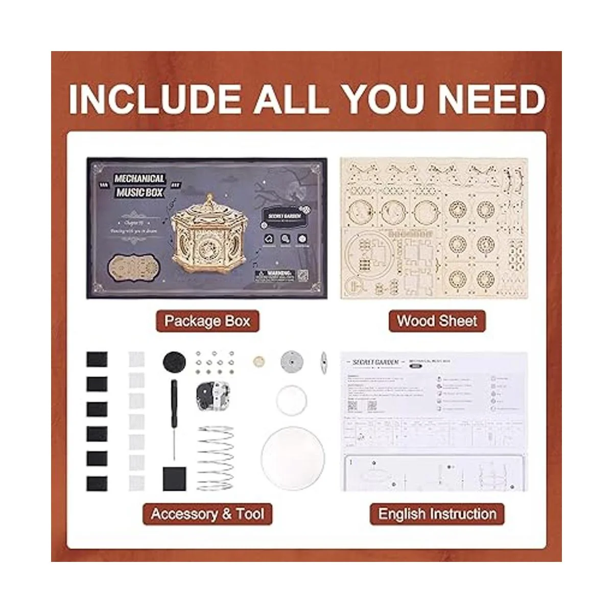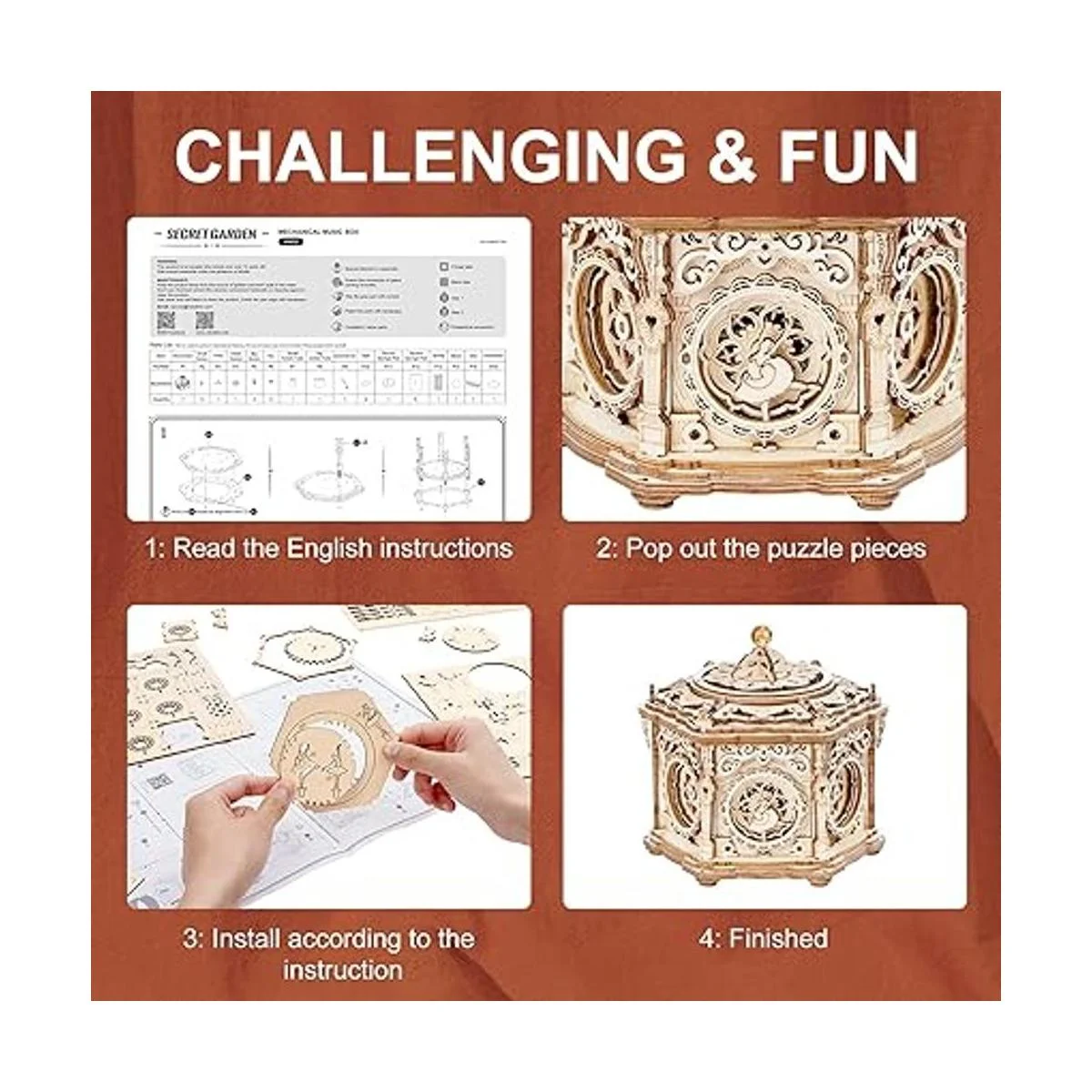 RoWood Rompecabezas de madera 3D para adultos, juguete de caja de música para ejercitar el cerebro, kit de modelo mecánico, regalo para adolescentes y niñas en cumpleaños, día de San Valentín, Navidad, jardín secreto