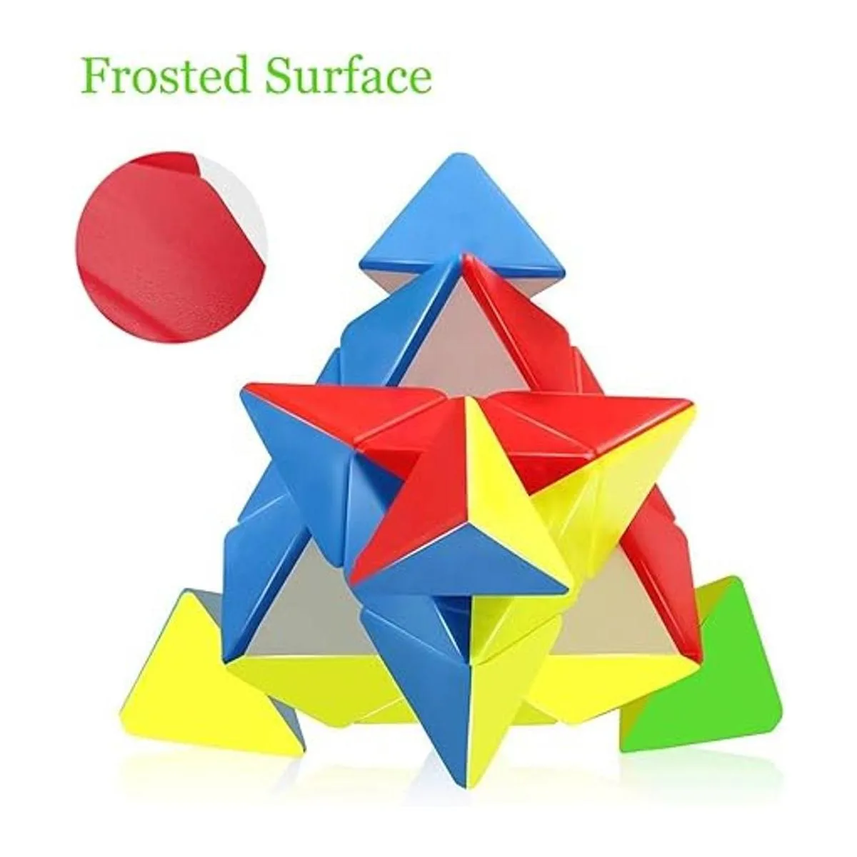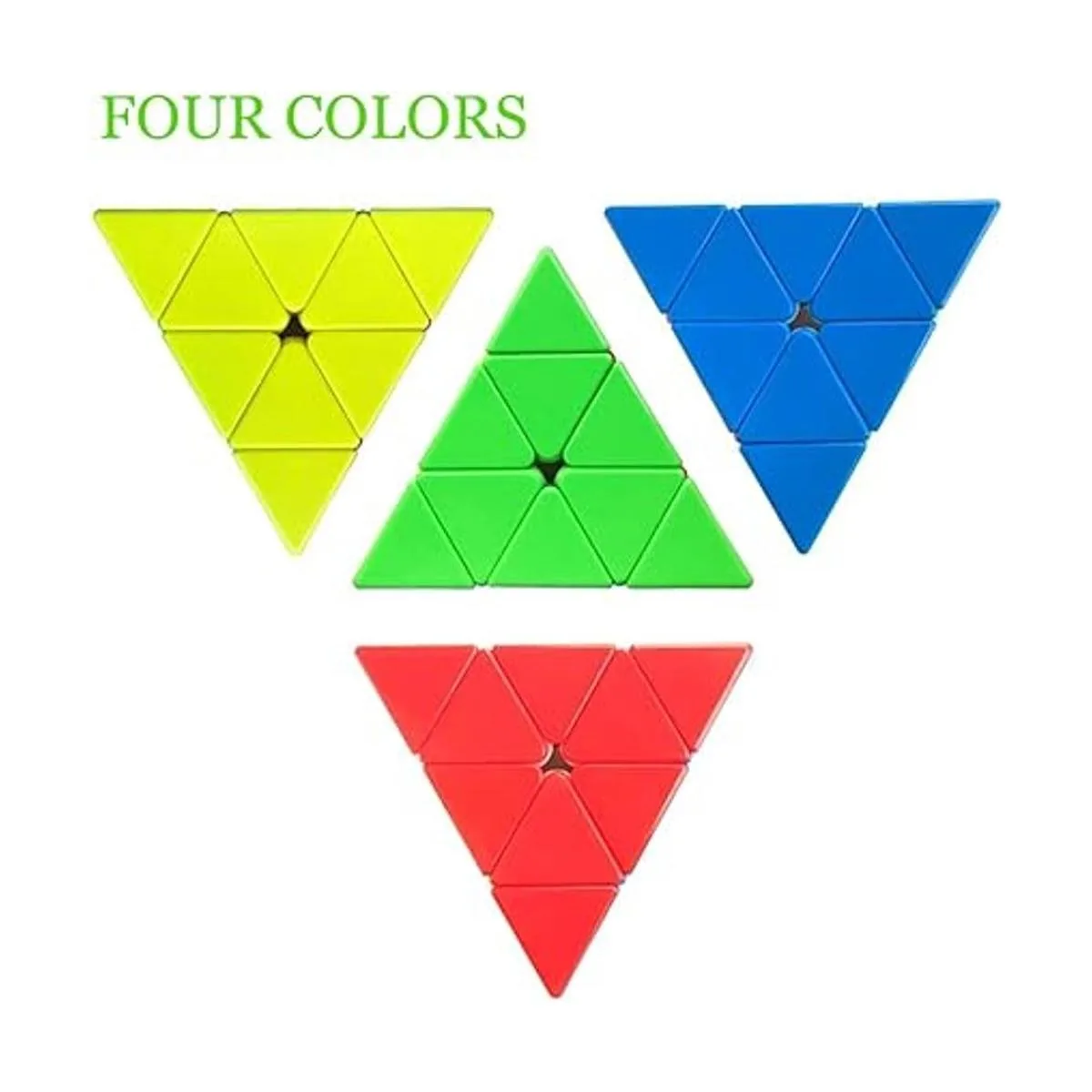 Material reciclable y adhesivo de color vivo: el cubo Pyraminx de 3 x 3 está hecho de material ABS no tóxico y calcomanías de PVC de larga duración que no se decoloran, que no son tóxicas e insípidas. Pegatinas finas que proporcionan un mejor reconocimiento de color y una jugabilidad superior, no se quitan fácilmente.