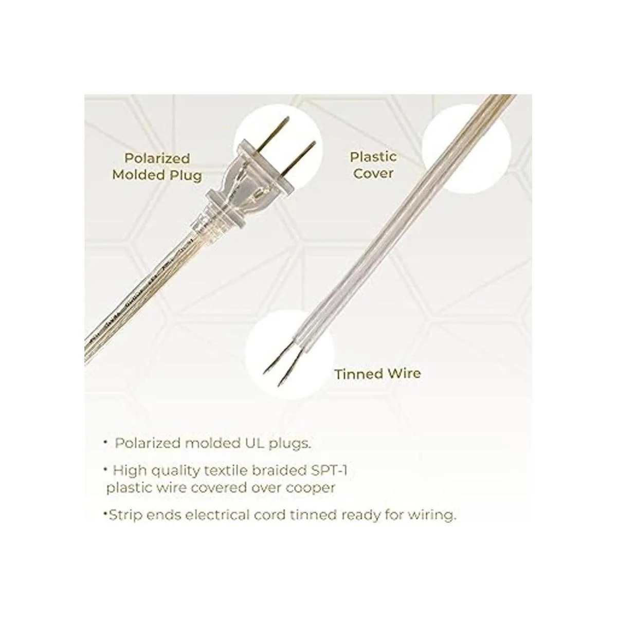 Kit de lámpara con certificación UL: cable de reparación de lámpara SPT2. Los enchufes UL polarizados garantizan la consistencia para tu instalación. La cubierta de vinilo resiste la humedad, la abrasión y la exposición prolongada al sol