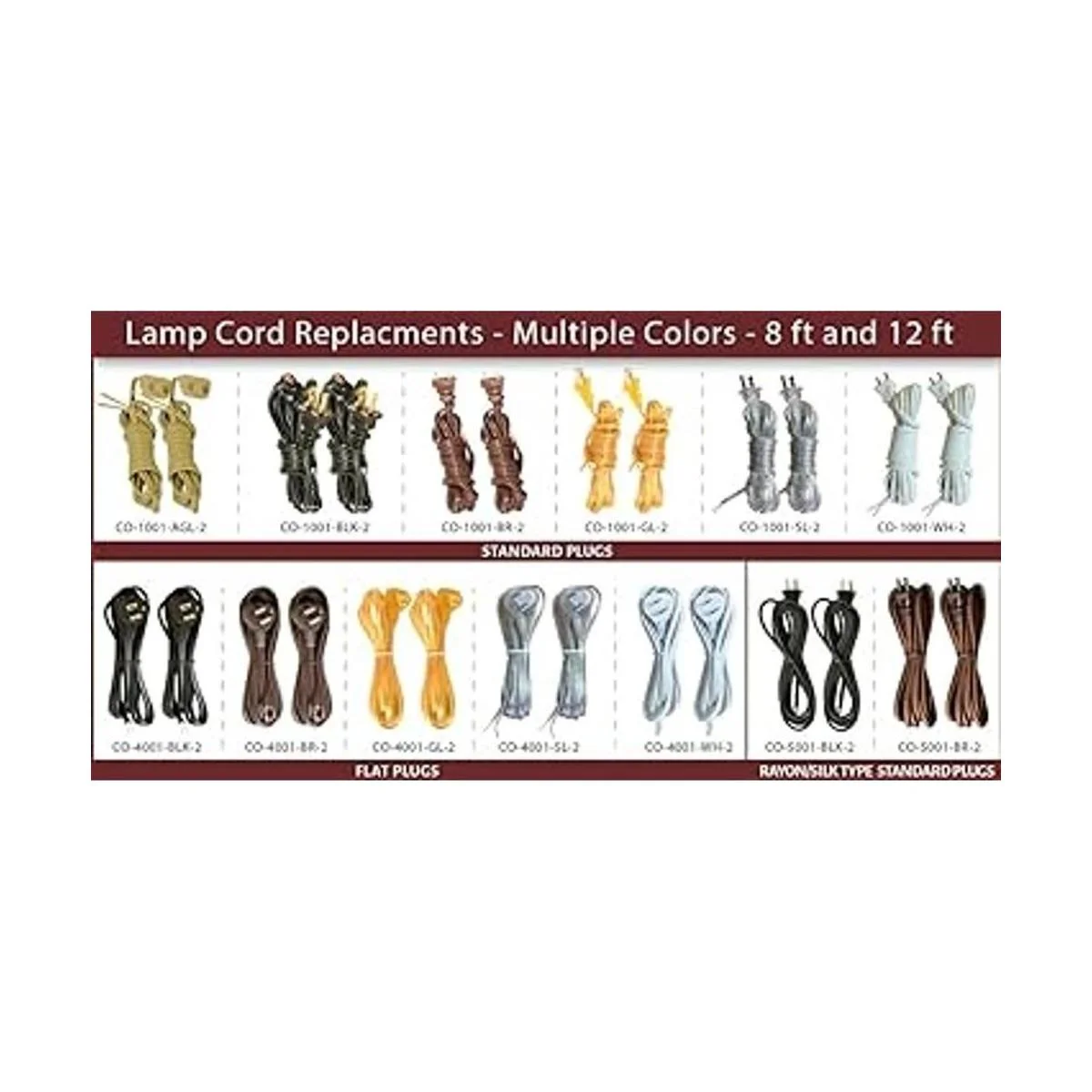 Royal Designs Cable para lámpara conectores planos, extremos deshilachados listos para cableado, 8 pies de largo, color marrón, SPT1 UL listado