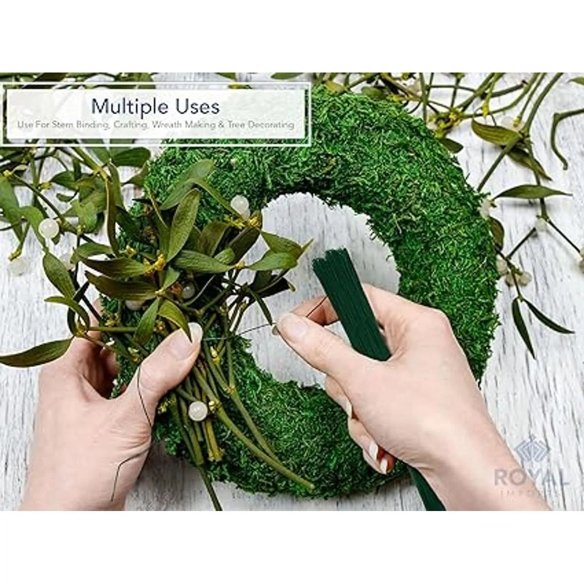 Usos: el alambre de paleta se utiliza comúnmente para envolver tallos de flores individuales, así como ramos florales. Se puede utilizar para fijar arreglos florales a la superficie deseada. Con el alambre de unión Royal Imports está garantizado para permanecer en su lugar. También se puede utilizar para tejer joyas, coronas, decoración de árboles de vacaciones, manualidades y guirnaldas de bricolaje.