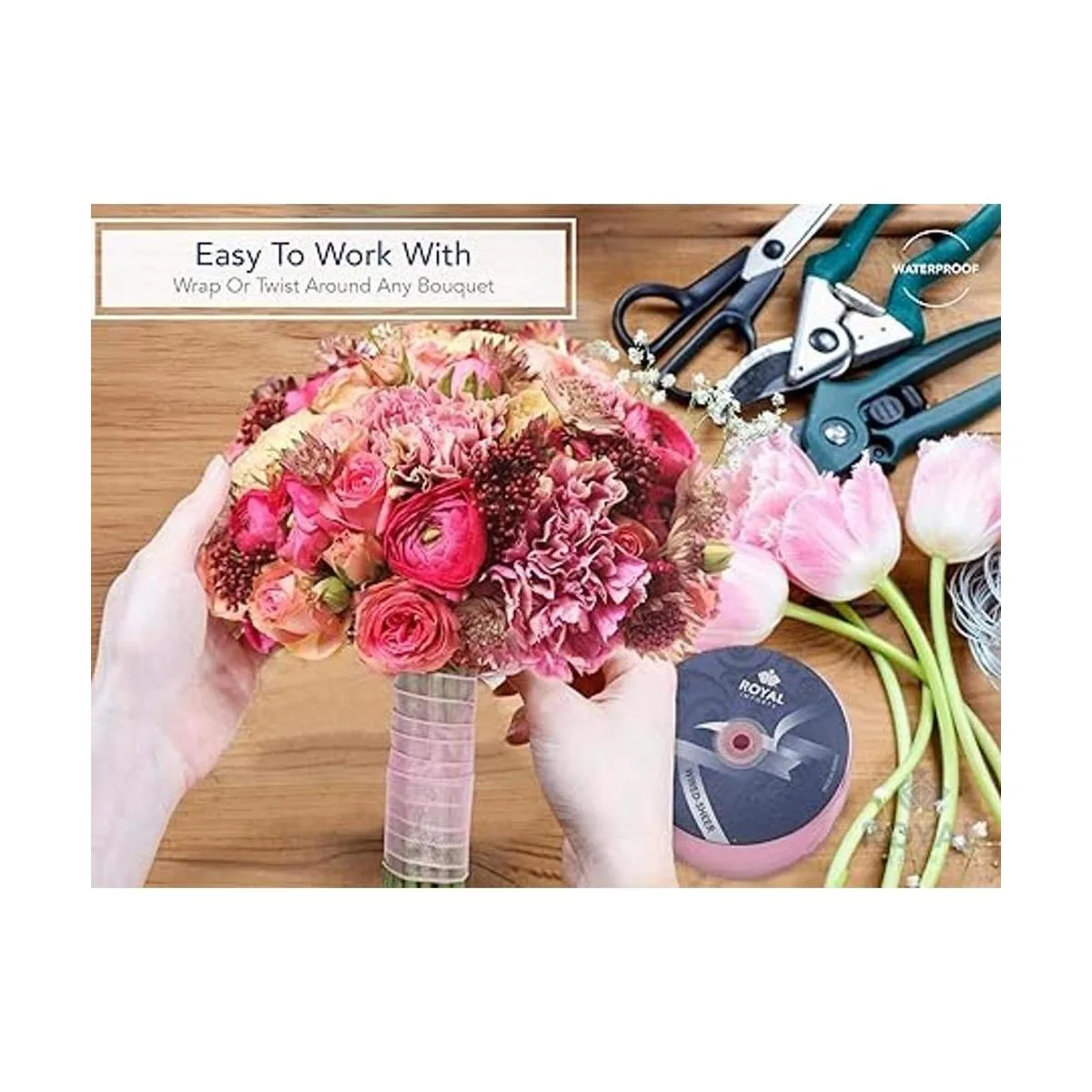 Royal Imports Cinta transparente con cable para decoración floral y manualidades, rollo de 50 yardas carrete de 150 pies a granel