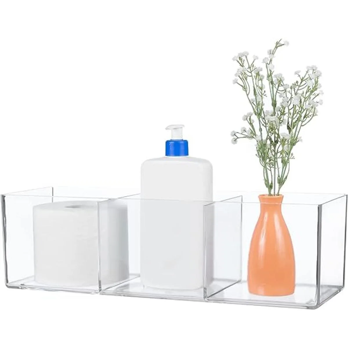 Calidad: este atractivo organizador está hecho de material acrílico transparente de alta calidad para maximizar la visibilidad del contenido. El contenedor de almacenamiento rectangular dividido cuenta con paredes acrílicas gruesas y base pesada para garantizar la durabilidad. Ideal para exhibir en mesa, estante de baño, tanque de inodoro, encimera de cocina, etc.