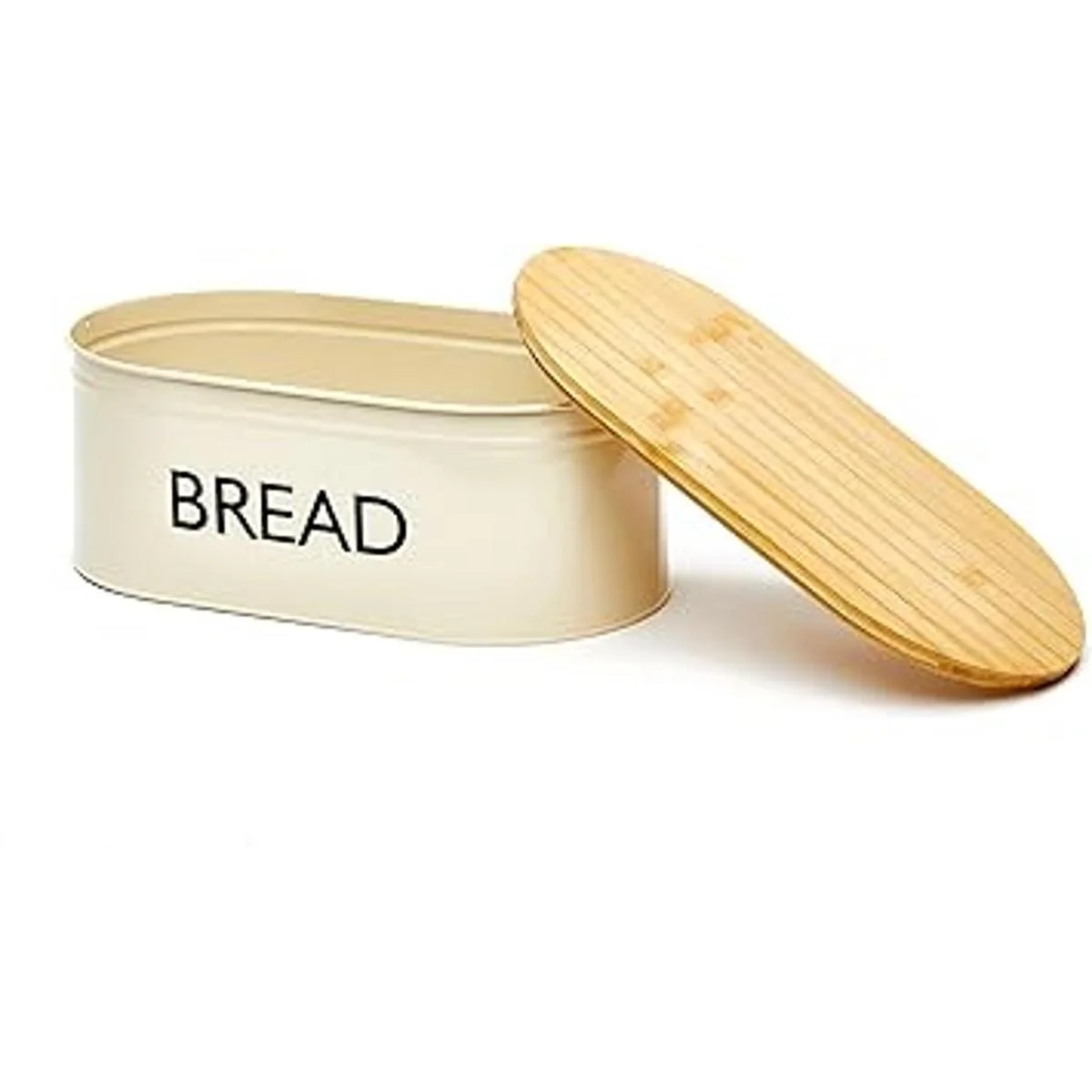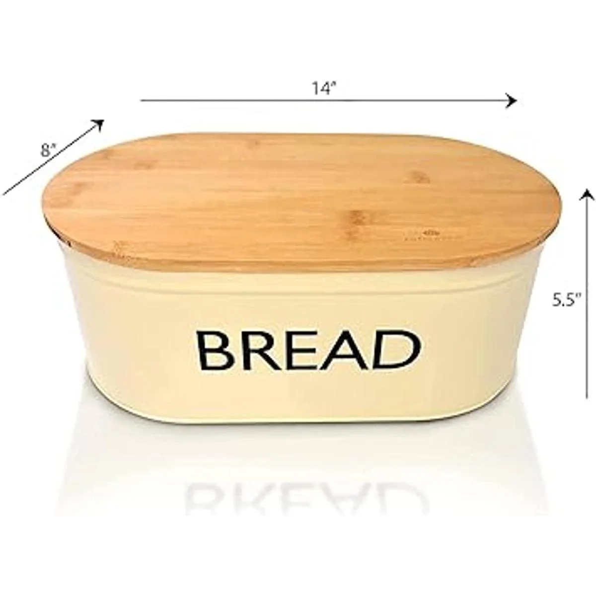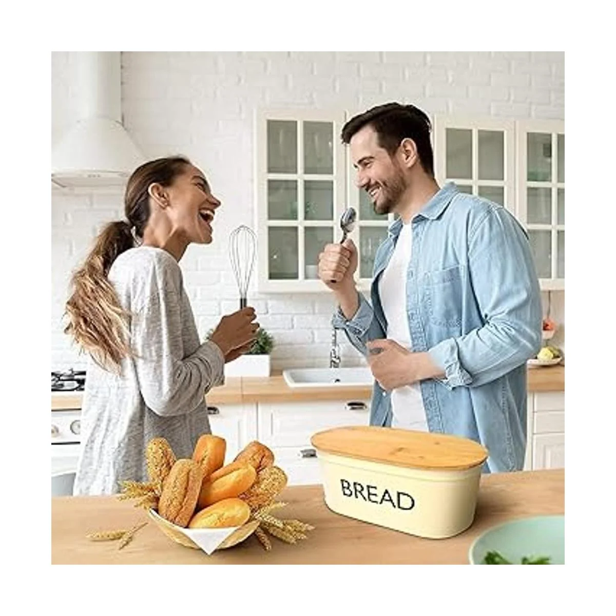 ROYALHOUSE Panera de metal prémium con tapa de bambú, almacenamiento de pan, contenedor de pan para encimera de cocina, decoración de cocina, cocina vintage