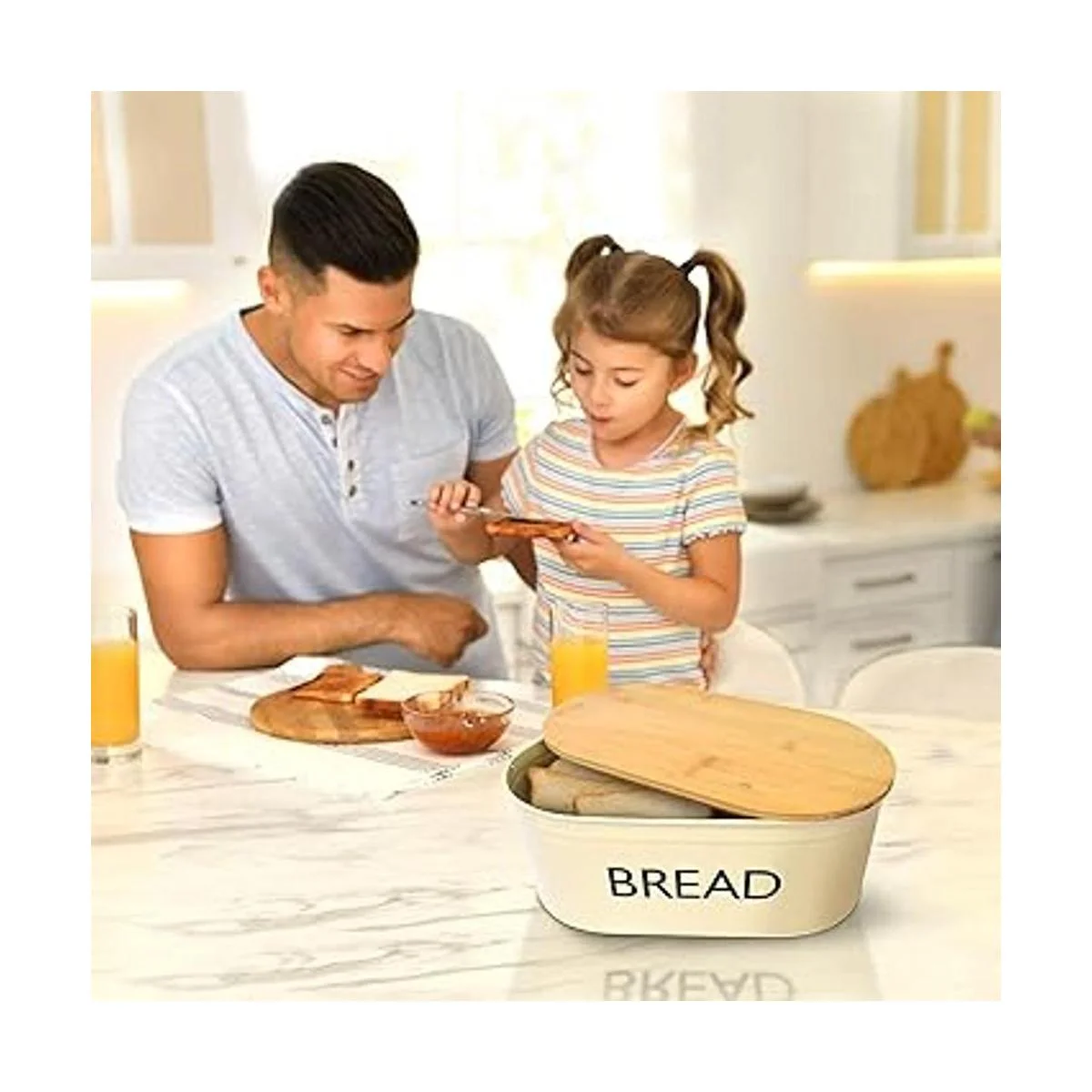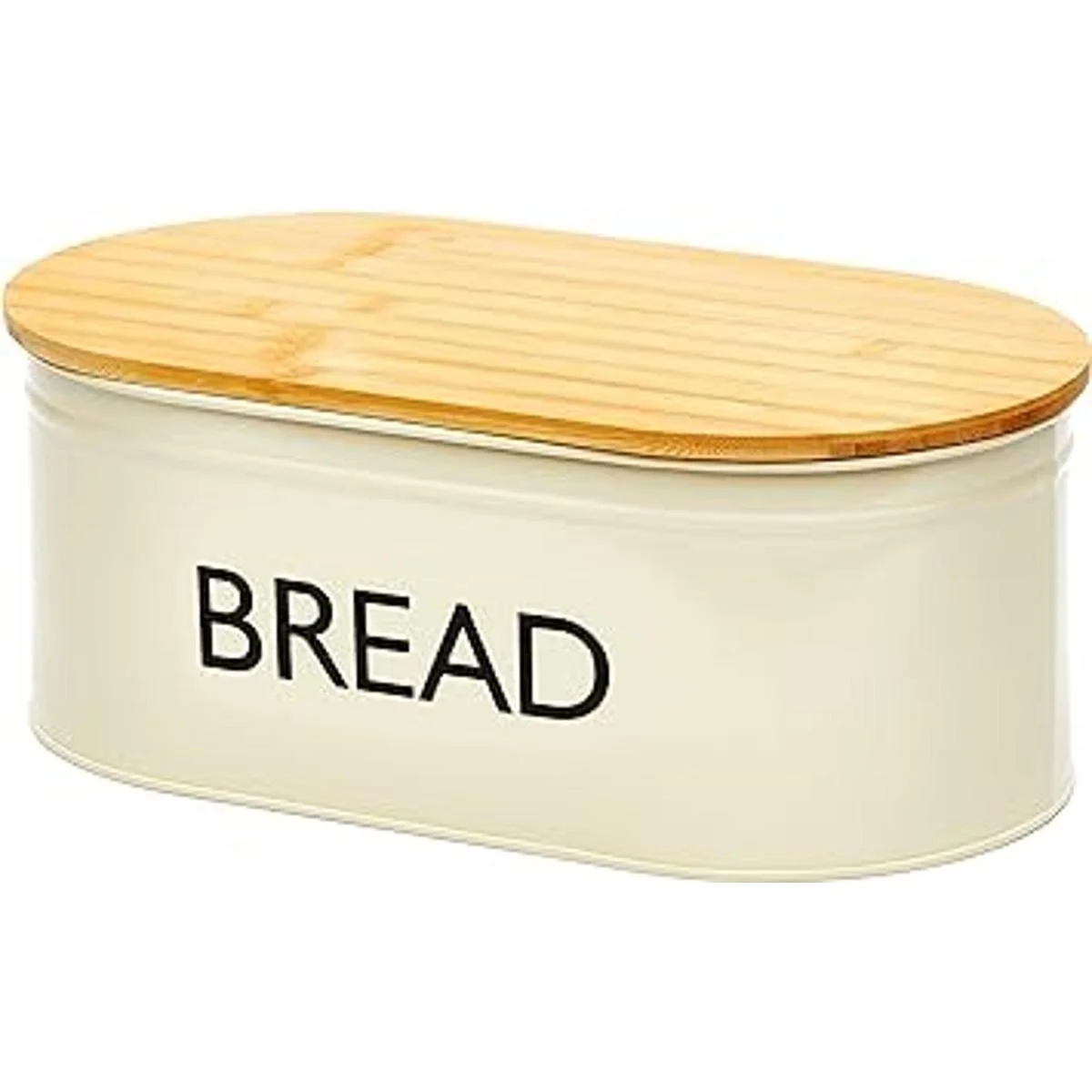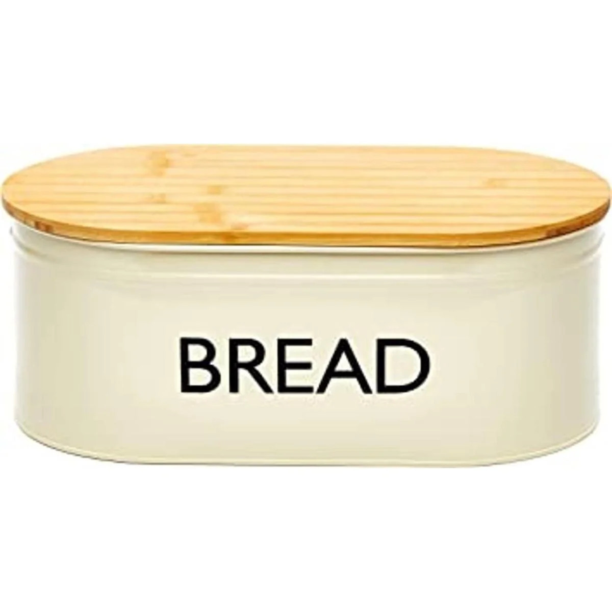 ROYALHOUSE Panera de metal prémium con tapa de bambú, almacenamiento de pan, contenedor de pan para encimera de cocina, decoración de cocina, cocina vintage