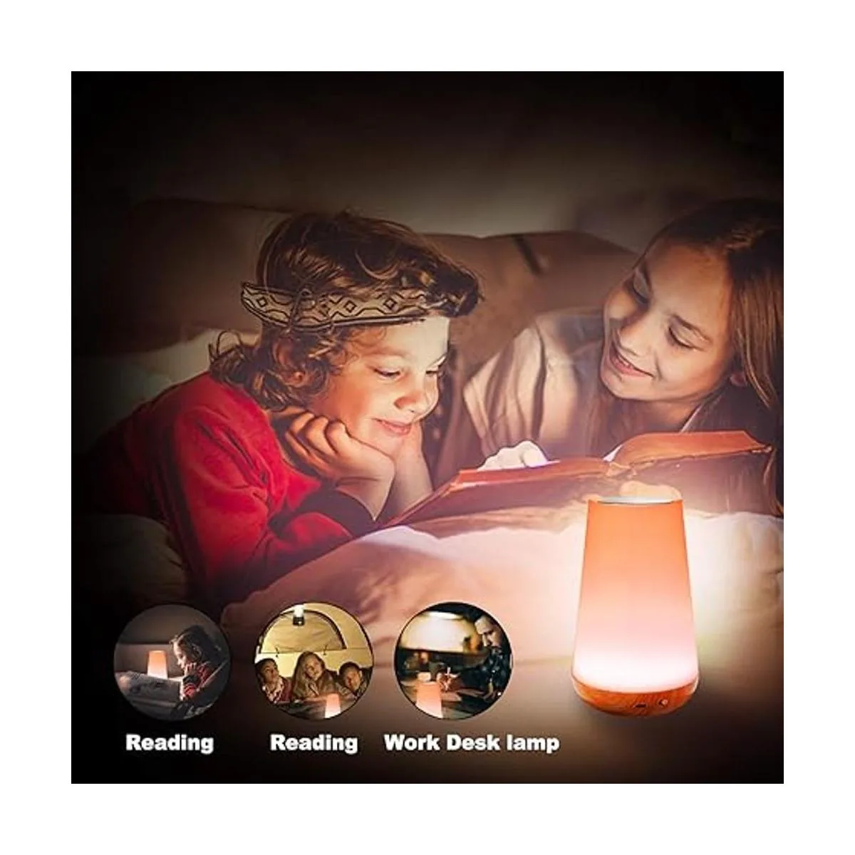 ROYFACC Lámpara LED de noche táctil, lámpara de mesa de noche para dormitorio de niños, recargable regulable con control remoto, luz blanca cálida, cambio de color RGB