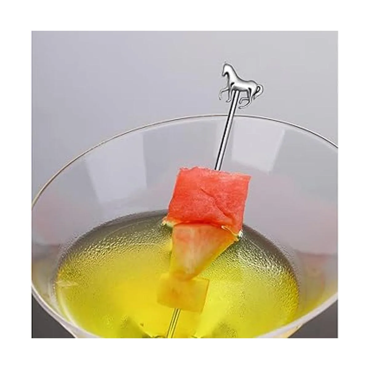 RRRuo Palillos reutilizables para cócteles de caballos, palillos de fruta para aperitivos, aceitunas, brochetas de cerezas Brandied, 8 piezas plateado