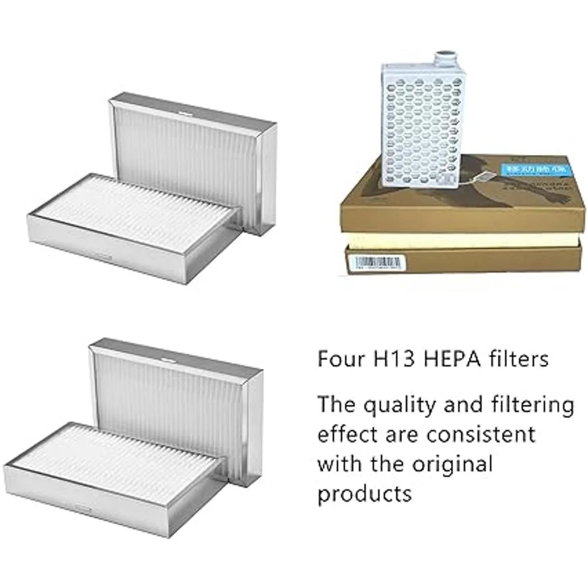 Cuatro filtros HEPA H13 en total, tamaño consistente, compatibilidad perfecta