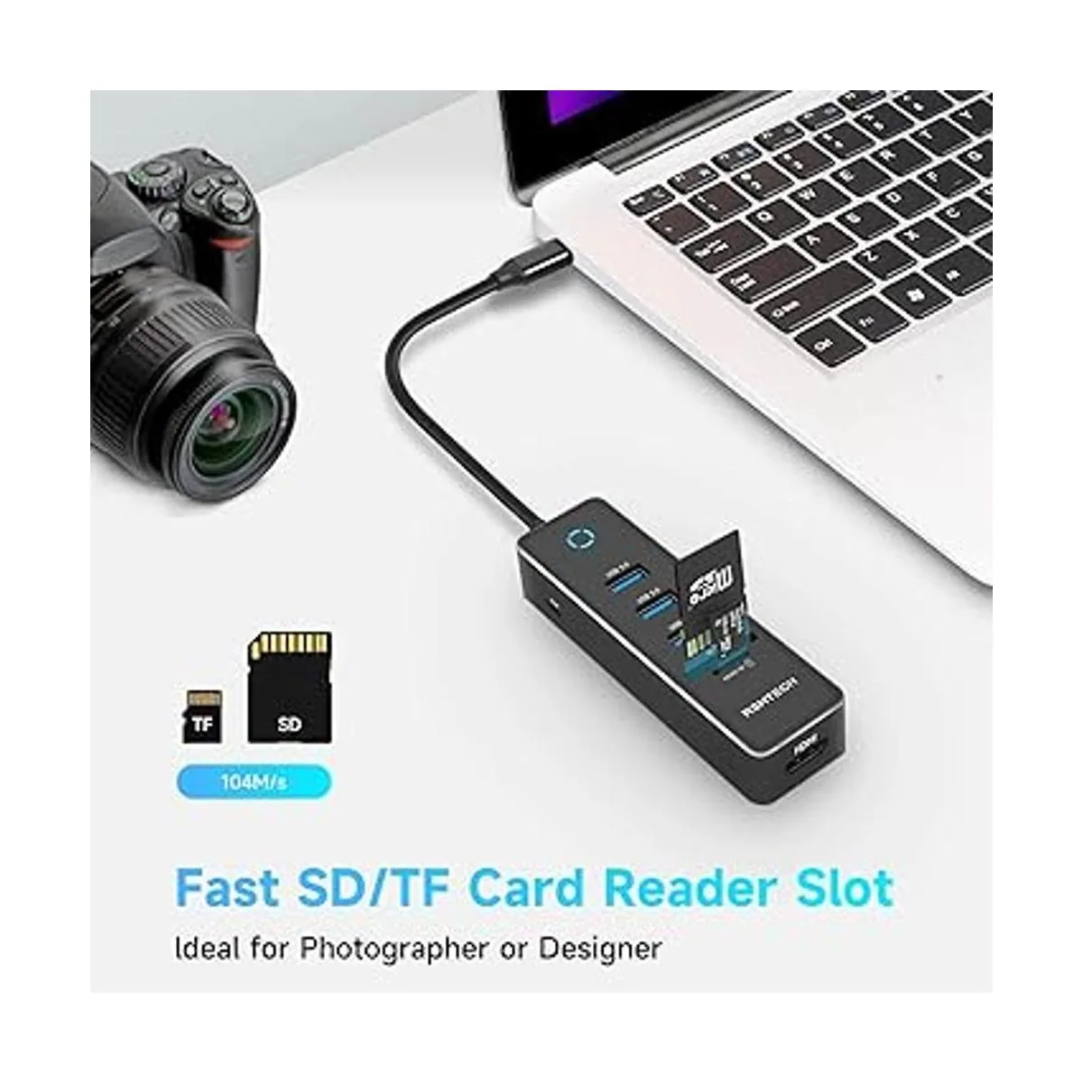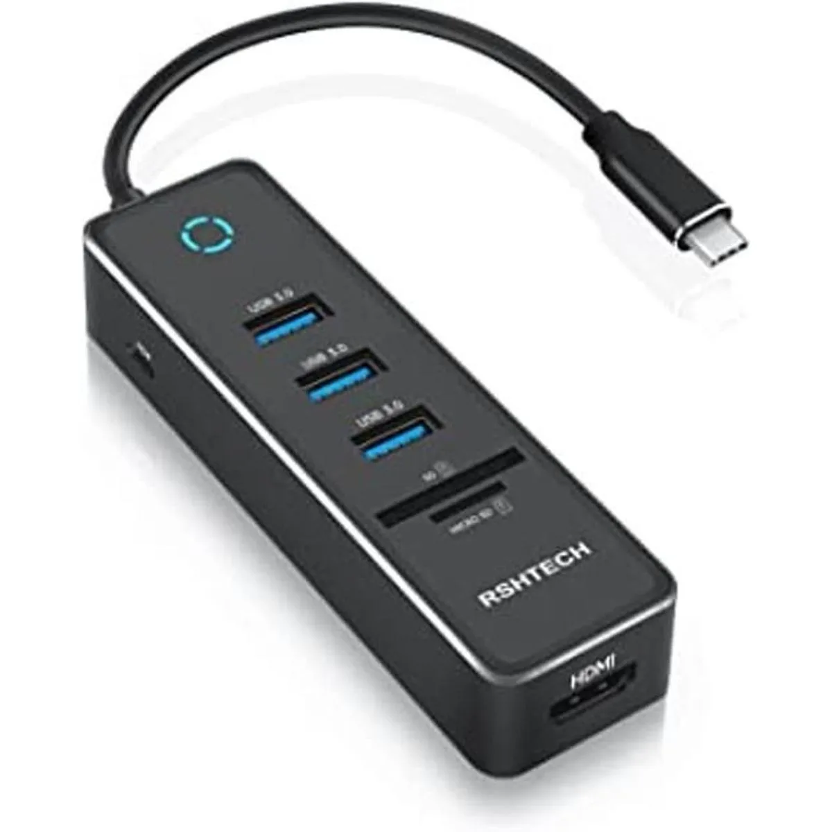 RSHTECH Hub USB C, adaptador de dongle con HDMI 4K, 3 puertos de datos USB 3.0, entrega de energía de 100 W, lector de tarjetas SDTF, base de cubo USBCThunderbolt 3 para PC y laptop, RSHT16