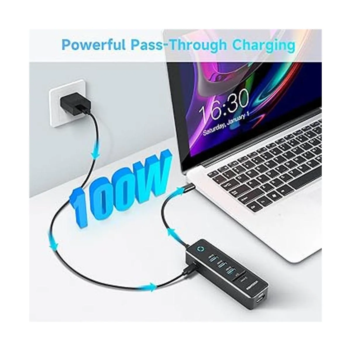 Entrega de energía de 100 W: el hub tipo c/Thunderbolt 3 soporta una carga de paso USB C de 100 W, y proporciona energía adicional para disco duro y DVD, ideal para MacBook Pro/Air y otros dispositivos USB C.