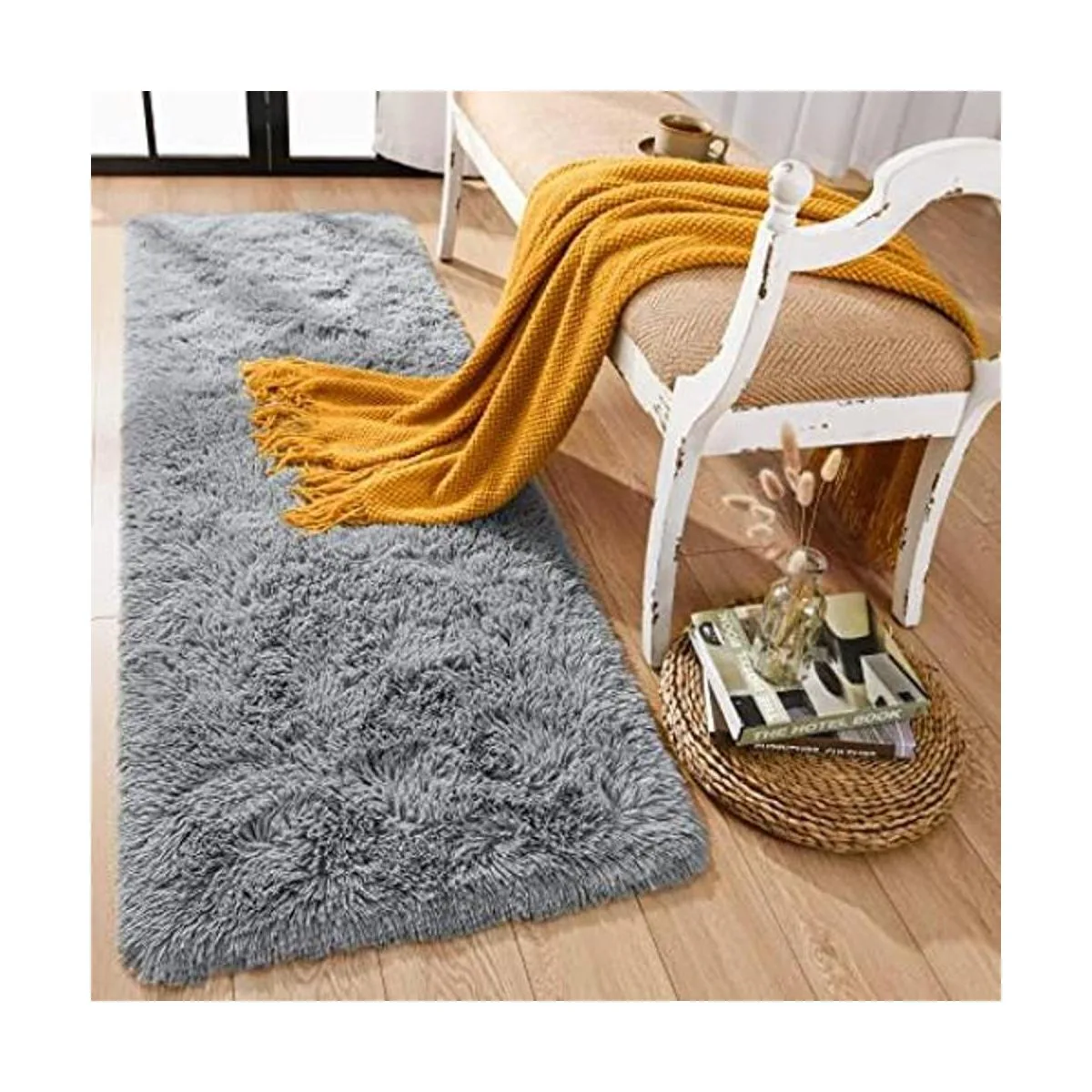 Product Note Since this fuzzy runner rug comes with a vacuum packaging bag, its normal to see some creases, please lay it flat for 2 to 3 days and wait patiently for fur runner to return fluffy.