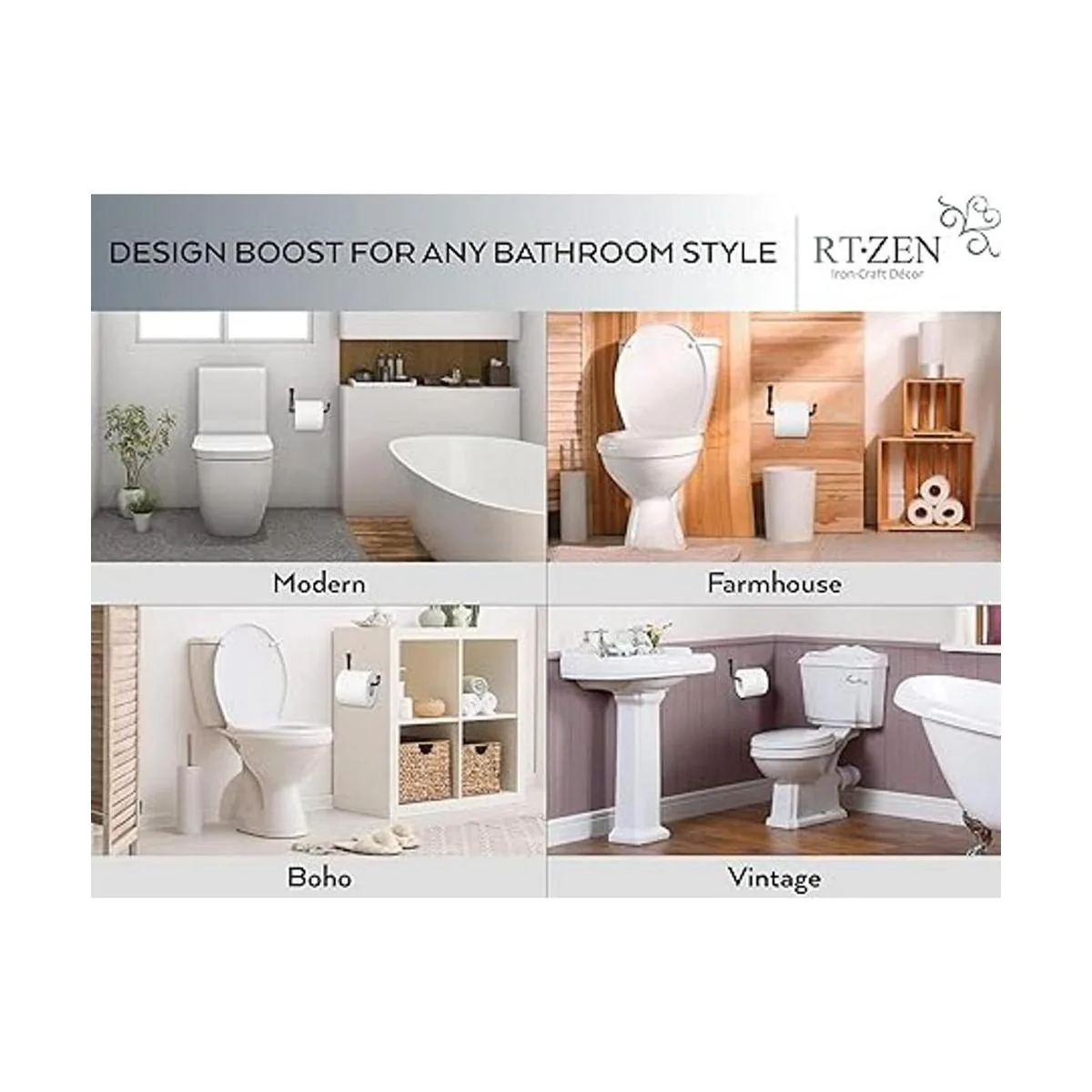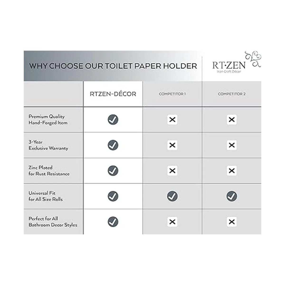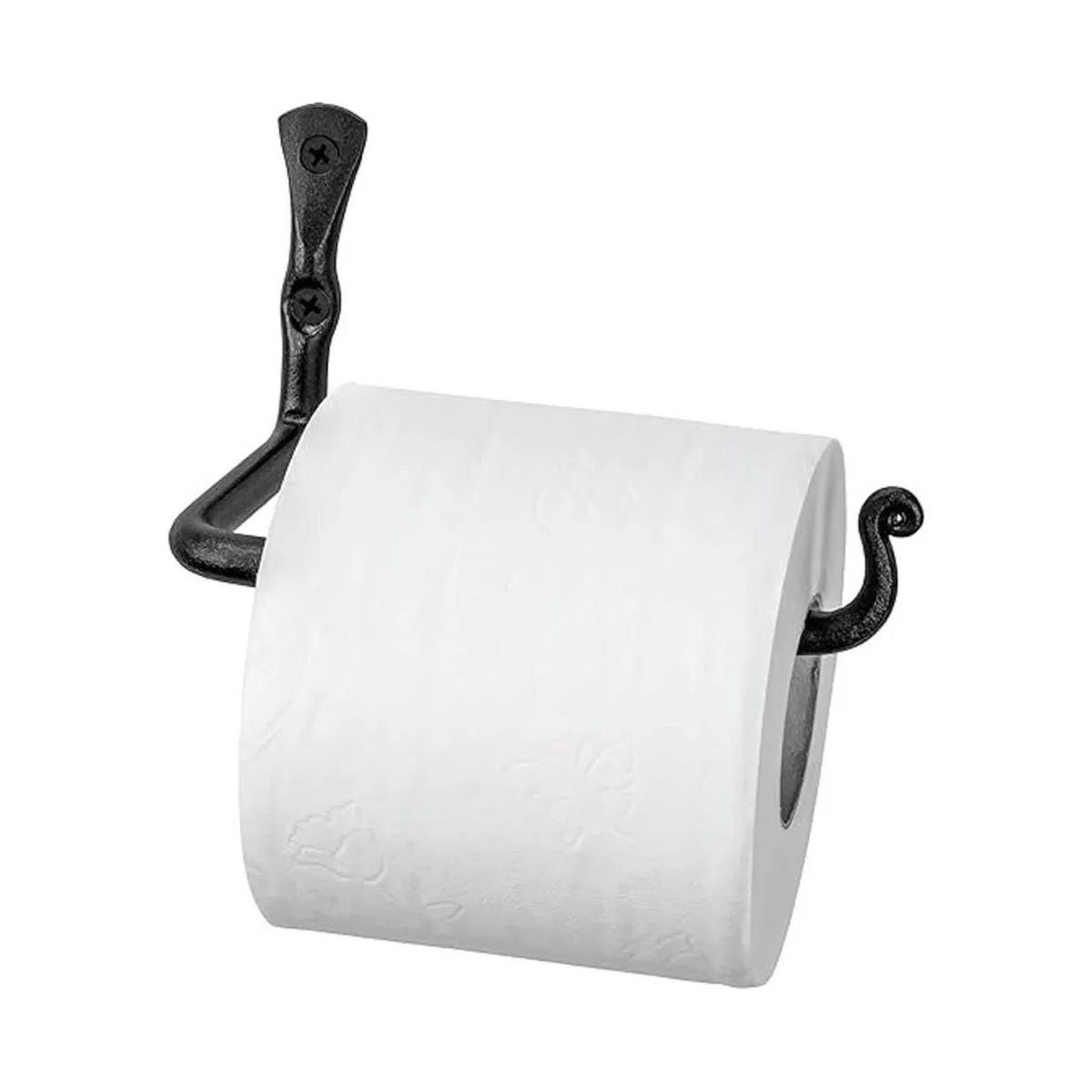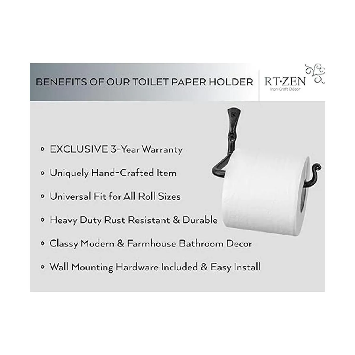 RTZEN Soporte de papel higiénico para baño, hecho a mano de hierro forjado rústico, soporte para rollo de inodoro Barra de papel higiénico para montaje en pared negro mate para decoración moderna de baño de granja