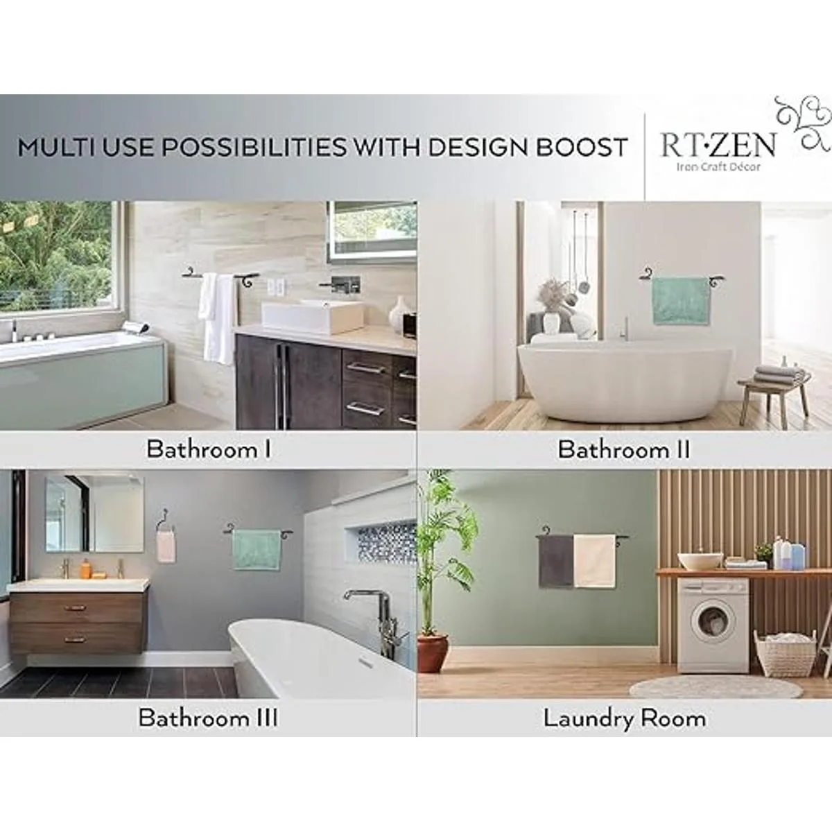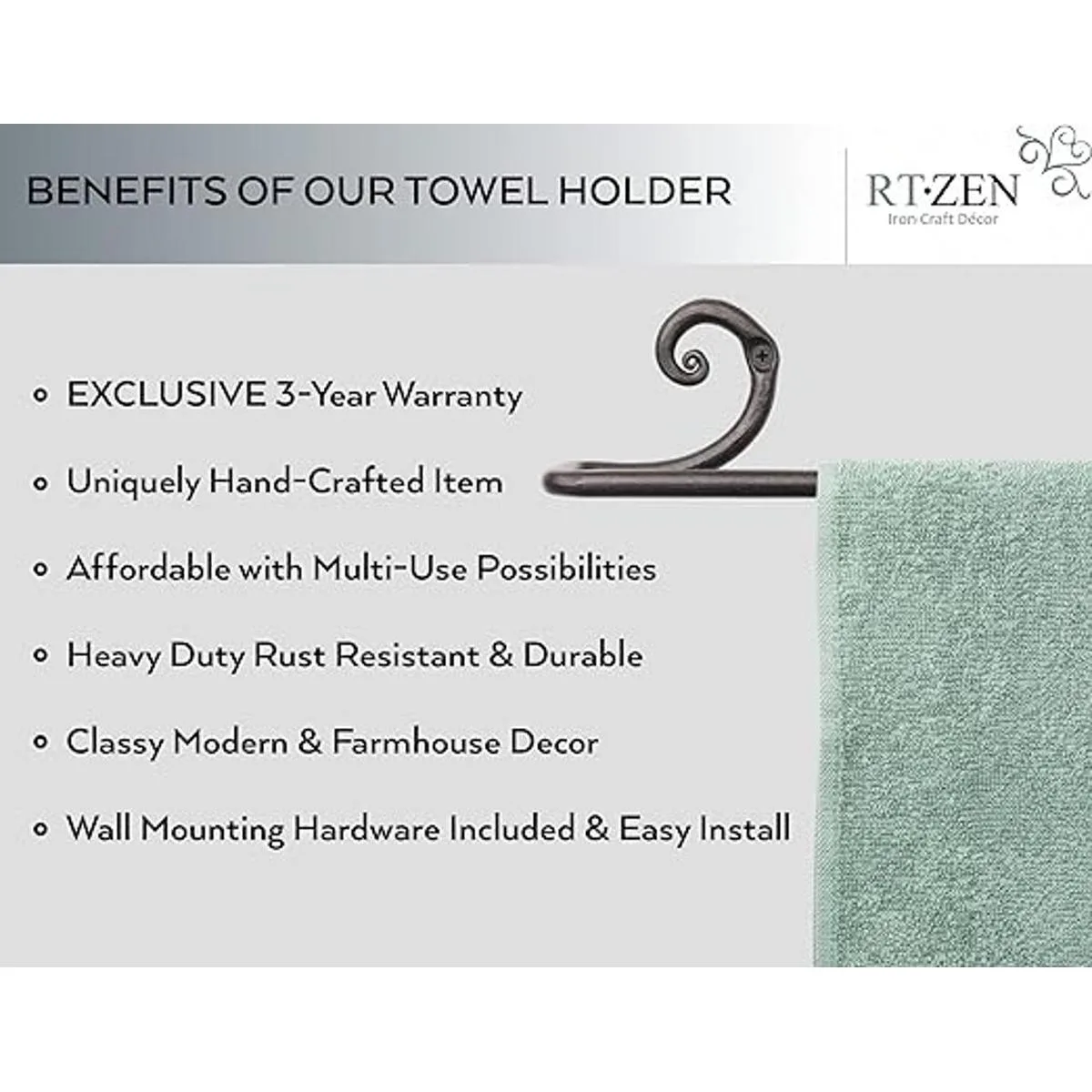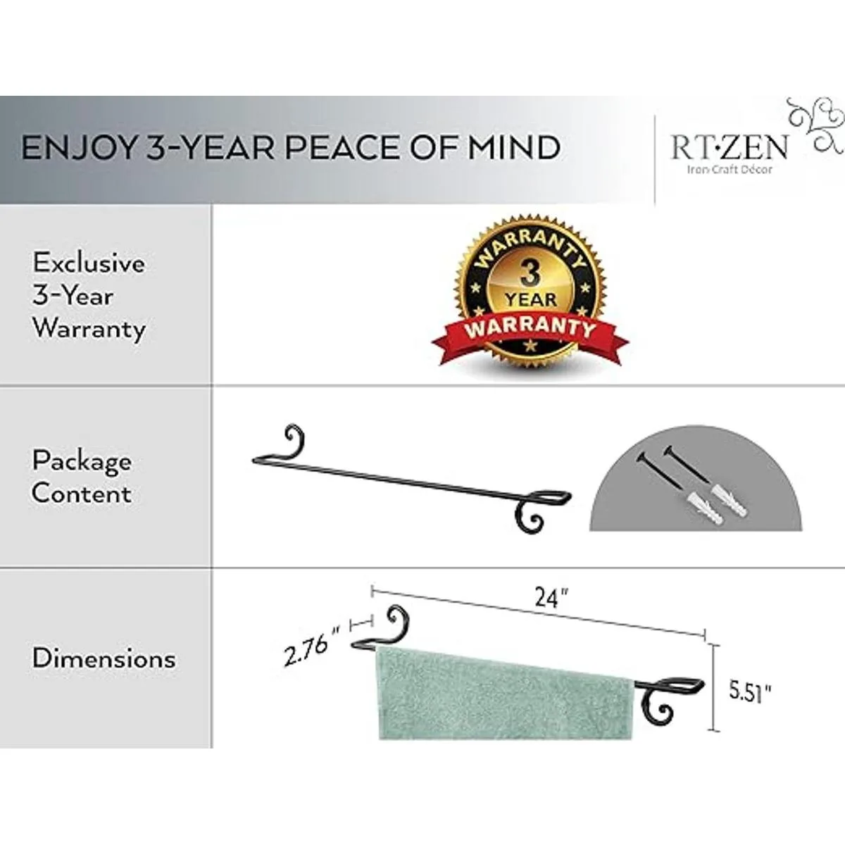 RTZEN Toallero para baño, soporte de pared de hierro forjado con detalle de curva de remolino, para toallas de baño o cocina, accesorios de baño negro mate, toallero de 24 pulgadas L