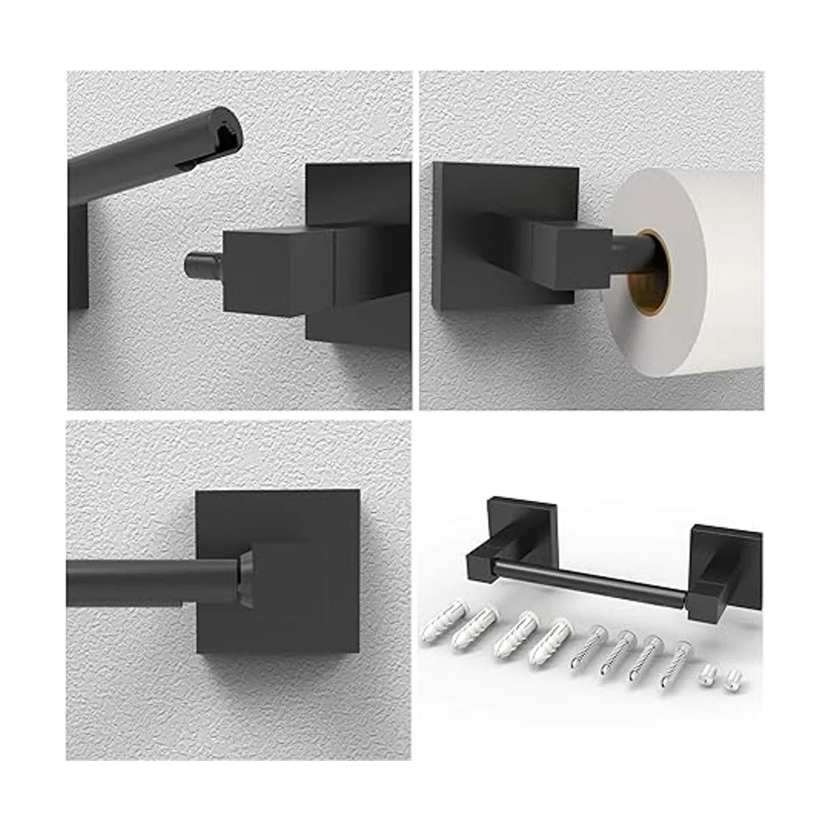 Ruacq Soporte de papel higiénico negro mate, soporte de papel higiénico, soporte de papel higiénico, soporte de papel higiénico, acero inoxidable y aleación de zinc, moderno montado en la pared