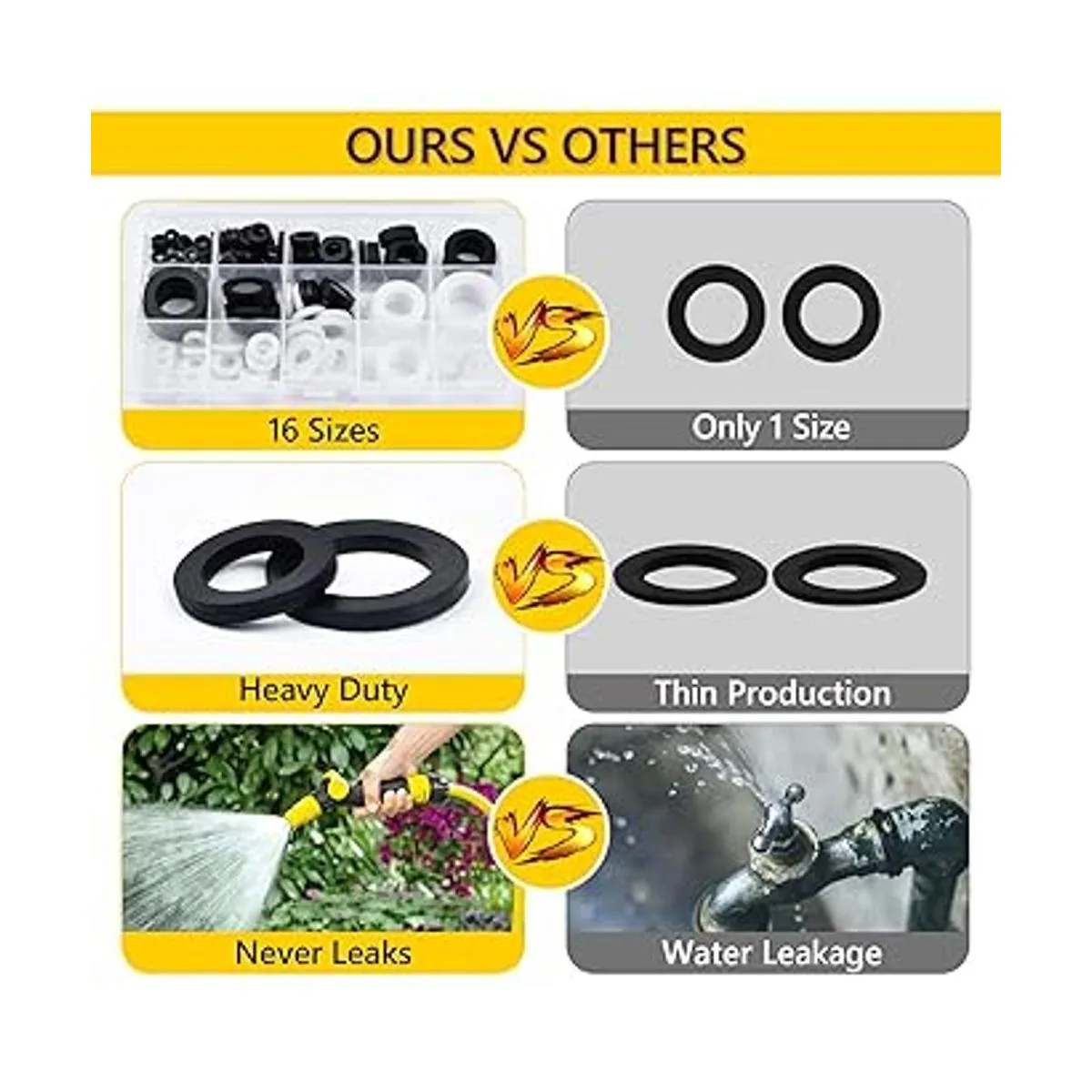 GREAT SET : With this plumbing rubber washers assorted kit, you have 2 different materials and 16 sizes to choose from, which can supply different sizes of hose gaskets for your home, garden and farm. These rubber hose washers fit all standard hose fittings, washer, dryer and faucet connectors. You will never have to worry about getting the incorrect size again.