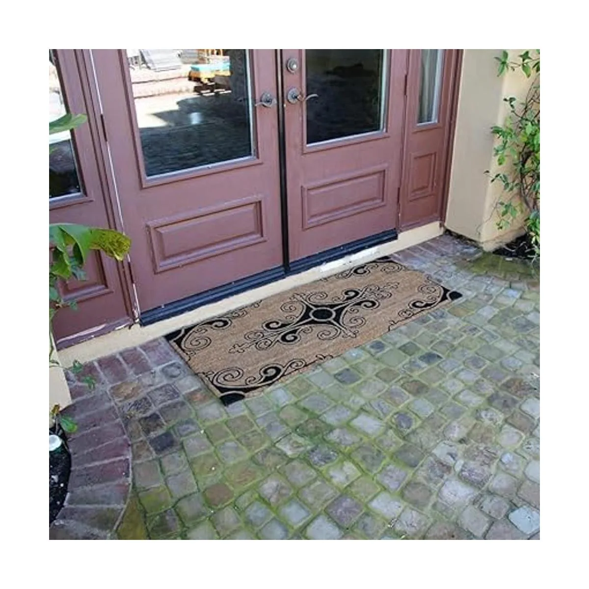 RubberCal. Traditional Fleur de Lis French Mat. Tapete para puerta de 2 Tamaños, Marrón