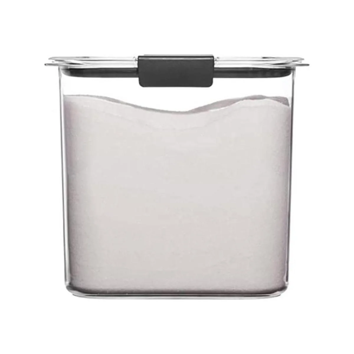 Rubbermaid Brilliance Contenedor hermético de almacenamiento de alimentos para despensa con tapa para harina, azúcar y arroz, 12 tazas, transparentegris